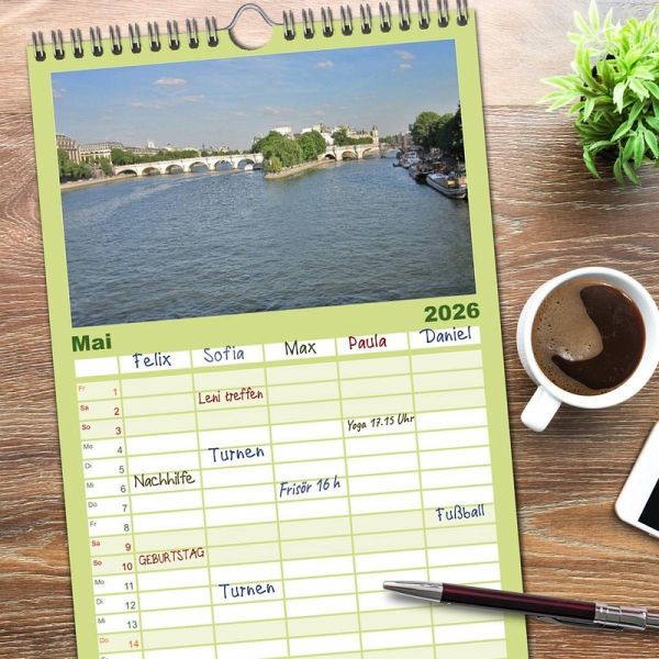 PRAKTISCH - übersichtlicher Familienkalender mit 5 Spalten für bis zu 5 Personen für mehr Struktur im Alltag - so bleiben alle Termine im Blick!ÜBERSICHTLICH - mit farblich getrennten Wochen- und Feiertagen. Die einzelnen Felder bieten genügend Platz für Eintragungen. So macht Organisieren Spaß!FANTASTISCHE BILDER - Dieser Planer ist nicht nur eine nützliche Hilfe im Alltag, sondern schmückt gleichzeitig Ihr Zuhause. Ideal auch als Geschenk.FÜR ALLE STIFTE GEEIGNET - ganz egal, ob Sie lieber mit Kugelschreiber oder Bleistift schreiben.NACHHALTIG - deutliche Abfallreduzierung durch bedarfsgerechte Einzelstückfertigung, umweltfreundliches FSC-zertifiziertes Papier, Produktion in Deutschland, klimabewusste Logistik.Perspektiven aus Paris von Autor(in): ViennaFrame