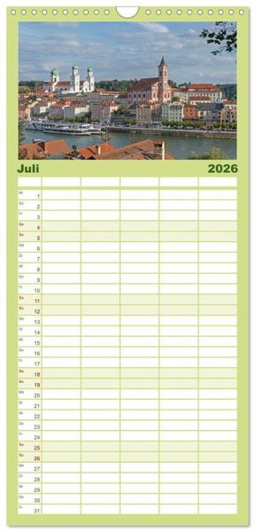 PRAKTISCH - übersichtlicher Familienkalender mit 5 Spalten für bis zu 5 Personen für mehr Struktur im Alltag - so bleiben alle Termine im Blick!ÜBERSICHTLICH - mit farblich getrennten Wochen- und Feiertagen. Die einzelnen Felder bieten genügend Platz für Eintragungen. So macht Organisieren Spaß!FANTASTISCHE BILDER - Dieser Planer ist nicht nur eine nützliche Hilfe im Alltag, sondern schmückt gleichzeitig Ihr Zuhause. Ideal auch als Geschenk.FÜR ALLE STIFTE GEEIGNET - ganz egal, ob Sie lieber mit Kugelschreiber oder Bleistift schreiben.NACHHALTIG - deutliche Abfallreduzierung durch bedarfsgerechte Einzelstückfertigung, umweltfreundliches FSC-zertifiziertes Papier, Produktion in Deutschland, klimabewusste Logistik.Passau bietet südländisches Ambiente in Niederbayern. von Autor(in): Siegfried Kuttig