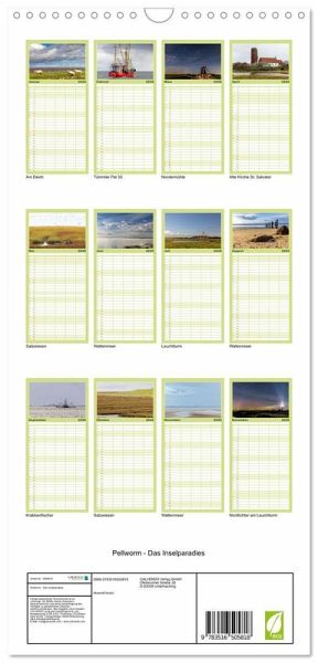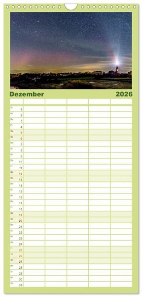 PRAKTISCH - übersichtlicher Familienkalender mit 5 Spalten für bis zu 5 Personen für mehr Struktur im Alltag - so bleiben alle Termine im Blick!ÜBERSICHTLICH - mit farblich getrennten Wochen- und Feiertagen. Die einzelnen Felder bieten genügend Platz für Eintragungen. So macht Organisieren Spaß!FANTASTISCHE BILDER - Dieser Planer ist nicht nur eine nützliche Hilfe im Alltag, sondern schmückt gleichzeitig Ihr Zuhause. Ideal auch als Geschenk.FÜR ALLE STIFTE GEEIGNET - ganz egal, ob Sie lieber mit Kugelschreiber oder Bleistift schreiben.NACHHALTIG - deutliche Abfallreduzierung durch bedarfsgerechte Einzelstückfertigung, umweltfreundliches FSC-zertifiziertes Papier, Produktion in Deutschland, klimabewusste Logistik.Stimmungsvolle Bilder dieser paradiesischen Nordseeinsel bei Tag und Nacht von Autor(in): Andreas Kretschmar
