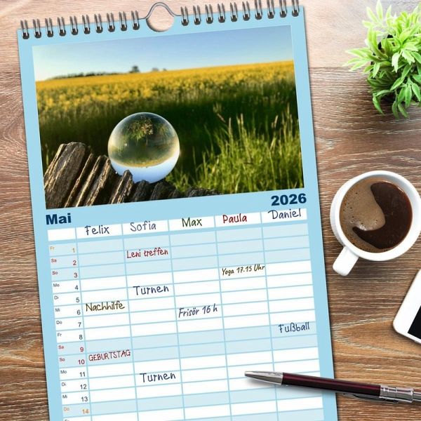 PRAKTISCH - übersichtlicher Familienkalender mit 5 Spalten für bis zu 5 Personen für mehr Struktur im Alltag - so bleiben alle Termine im Blick!ÜBERSICHTLICH - mit farblich getrennten Wochen- und Feiertagen. Die einzelnen Felder bieten genügend Platz für Eintragungen. So macht Organisieren Spaß!FANTASTISCHE BILDER - Dieser Planer ist nicht nur eine nützliche Hilfe im Alltag, sondern schmückt gleichzeitig Ihr Zuhause. Ideal auch als Geschenk.FÜR ALLE STIFTE GEEIGNET - ganz egal, ob Sie lieber mit Kugelschreiber oder Bleistift schreiben.NACHHALTIG - deutliche Abfallreduzierung durch bedarfsgerechte Einzelstückfertigung, umweltfreundliches FSC-zertifiziertes Papier, Produktion in Deutschland, klimabewusste Logistik.Naturfotografie mitanderem Blickwinkel von Autor(in): Birgit Schönharting