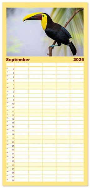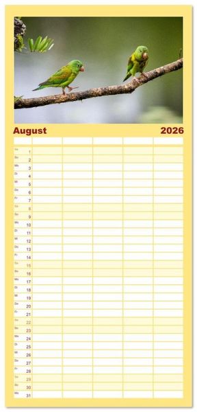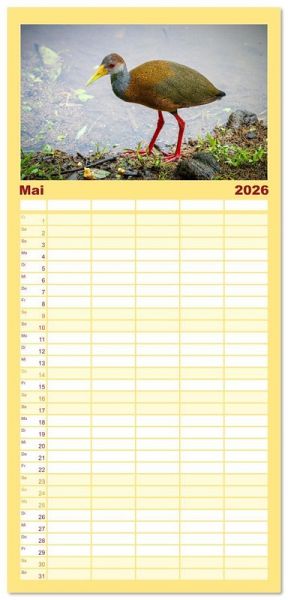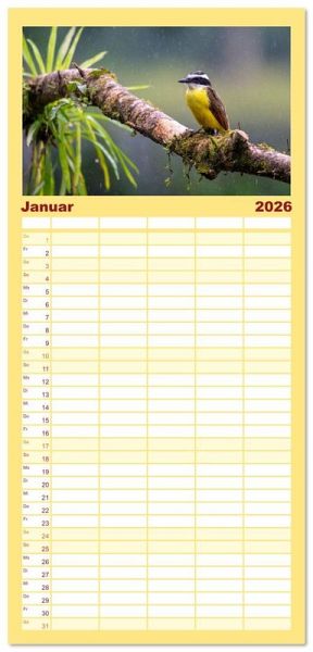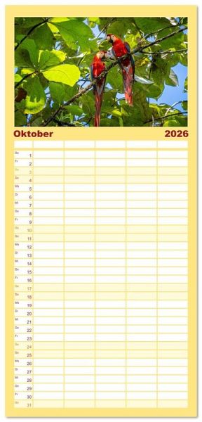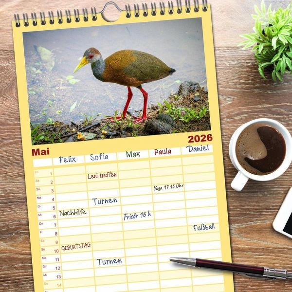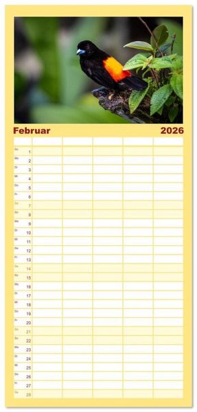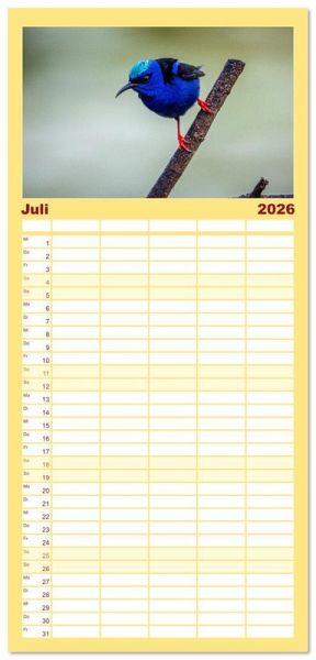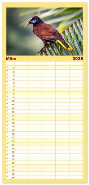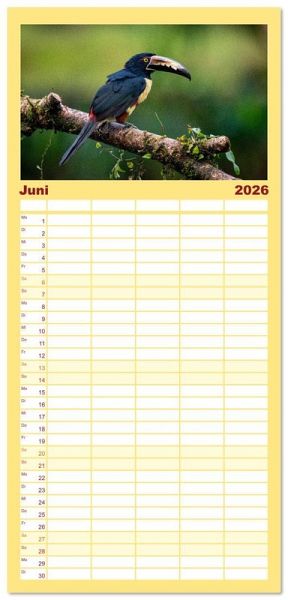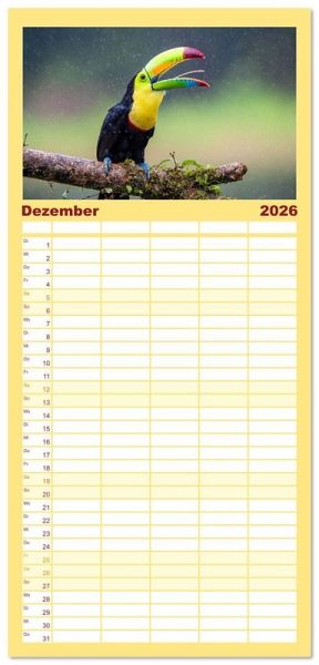 PRAKTISCH - übersichtlicher Familienkalender mit 5 Spalten für bis zu 5 Personen für mehr Struktur im Alltag - so bleiben alle Termine im Blick!ÜBERSICHTLICH - mit farblich getrennten Wochen- und Feiertagen. Die einzelnen Felder bieten genügend Platz für Eintragungen. So macht Organisieren Spaß!FANTASTISCHE BILDER - Dieser Planer ist nicht nur eine nützliche Hilfe im Alltag, sondern schmückt gleichzeitig Ihr Zuhause. Ideal auch als Geschenk.FÜR ALLE STIFTE GEEIGNET - ganz egal, ob Sie lieber mit Kugelschreiber oder Bleistift schreiben.NACHHALTIG - deutliche Abfallreduzierung durch bedarfsgerechte Einzelstückfertigung, umweltfreundliches FSC-zertifiziertes Papier, Produktion in Deutschland, klimabewusste Logistik.Entdecke 12 tropische Vogelarten aus Costa Rica von Autor(in): Jens Benninghofen