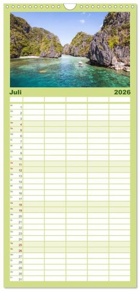 PRAKTISCH - übersichtlicher Familienkalender mit 5 Spalten für bis zu 5 Personen für mehr Struktur im Alltag - so bleiben alle Termine im Blick!ÜBERSICHTLICH - mit farblich getrennten Wochen- und Feiertagen. Die einzelnen Felder bieten genügend Platz für Eintragungen. So macht Organisieren Spaß!FANTASTISCHE BILDER - Dieser Planer ist nicht nur eine nützliche Hilfe im Alltag, sondern schmückt gleichzeitig Ihr Zuhause. Ideal auch als Geschenk.FÜR ALLE STIFTE GEEIGNET - ganz egal, ob Sie lieber mit Kugelschreiber oder Bleistift schreiben.NACHHALTIG - deutliche Abfallreduzierung durch bedarfsgerechte Einzelstückfertigung, umweltfreundliches FSC-zertifiziertes Papier, Produktion in Deutschland, klimabewusste Logistik.Landschaften und Tierwelt von den Philippinen von Autor(in): Matteo Colombo