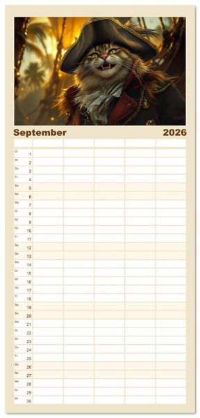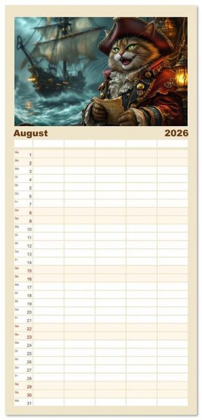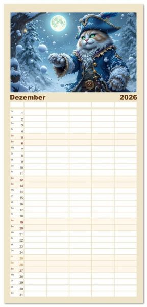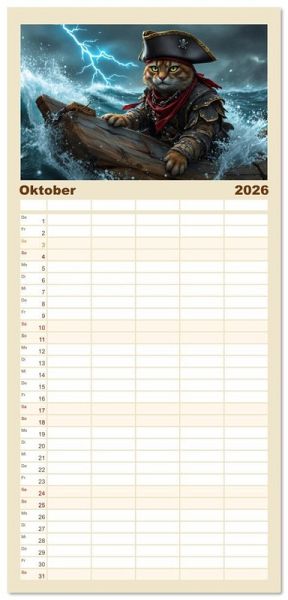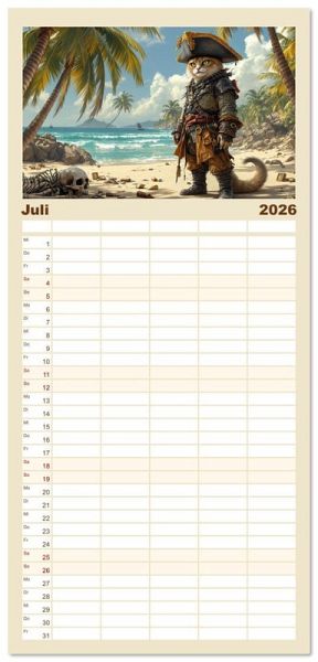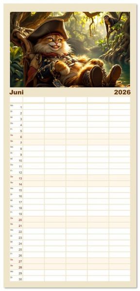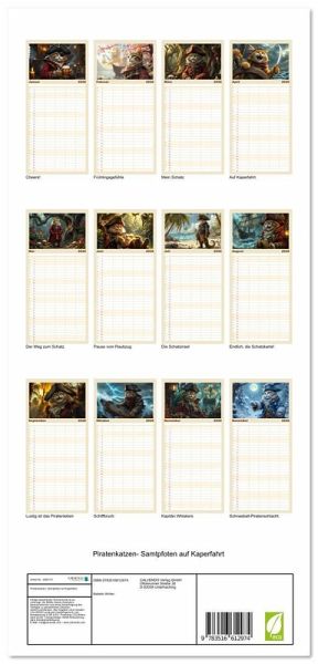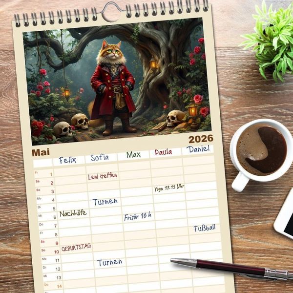 PRAKTISCH - übersichtlicher Familienkalender mit 5 Spalten für bis zu 5 Personen für mehr Struktur im Alltag - so bleiben alle Termine im Blick!ÜBERSICHTLICH - mit farblich getrennten Wochen- und Feiertagen. Die einzelnen Felder bieten genügend Platz für Eintragungen. So macht Organisieren Spaß!FANTASTISCHE BILDER - Dieser Planer ist nicht nur eine nützliche Hilfe im Alltag, sondern schmückt gleichzeitig Ihr Zuhause. Ideal auch als Geschenk.FÜR ALLE STIFTE GEEIGNET - ganz egal, ob Sie lieber mit Kugelschreiber oder Bleistift schreiben.NACHHALTIG - deutliche Abfallreduzierung durch bedarfsgerechte Einzelstückfertigung, umweltfreundliches FSC-zertifiziertes Papier, Produktion in Deutschland, klimabewusste Logistik.Die Abenteuer der Piratenkatzen. von Autor(in): Talpha