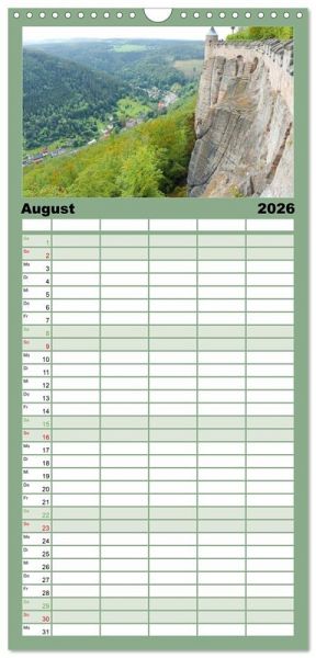 PRAKTISCH - übersichtlicher Familienkalender mit 5 Spalten für bis zu 5 Personen für mehr Struktur im Alltag - so bleiben alle Termine im Blick!ÜBERSICHTLICH - mit farblich getrennten Wochen- und Feiertagen. Die einzelnen Felder bieten genügend Platz für Eintragungen. So macht Organisieren Spaß!FANTASTISCHE BILDER - Dieser Planer ist nicht nur eine nützliche Hilfe im Alltag, sondern schmückt gleichzeitig Ihr Zuhause. Ideal auch als Geschenk.FÜR ALLE STIFTE GEEIGNET - ganz egal, ob Sie lieber mit Kugelschreiber oder Bleistift schreiben.NACHHALTIG - deutliche Abfallreduzierung durch bedarfsgerechte Einzelstückfertigung, umweltfreundliches FSC-zertifiziertes Papier, Produktion in Deutschland, klimabewusste Logistik.Von der historischen Altstadt ins traumhafte Elbsandsteingebirge von Autor(in): Gisela Kruse
