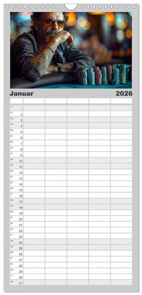 PRAKTISCH - übersichtlicher Familienkalender mit 5 Spalten für bis zu 5 Personen für mehr Struktur im Alltag - so bleiben alle Termine im Blick!ÜBERSICHTLICH - mit farblich getrennten Wochen- und Feiertagen. Die einzelnen Felder bieten genügend Platz für Eintragungen. So macht Organisieren Spaß!FANTASTISCHE BILDER - Dieser Planer ist nicht nur eine nützliche Hilfe im Alltag, sondern schmückt gleichzeitig Ihr Zuhause. Ideal auch als Geschenk.FÜR ALLE STIFTE GEEIGNET - ganz egal, ob Sie lieber mit Kugelschreiber oder Bleistift schreiben.NACHHALTIG - deutliche Abfallreduzierung durch bedarfsgerechte Einzelstückfertigung, umweltfreundliches FSC-zertifiziertes Papier, Produktion in Deutschland, klimabewusste Logistik.All In: Die Faszination des Pokerturnier-Lebens von Autor(in): Kerstin Waurick
