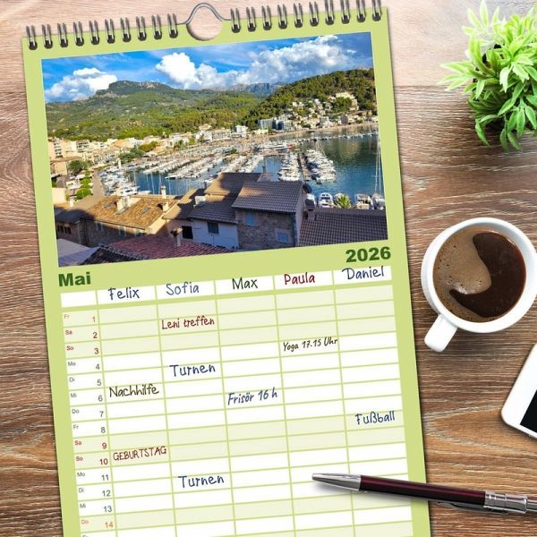 PRAKTISCH - übersichtlicher Familienkalender mit 5 Spalten für bis zu 5 Personen für mehr Struktur im Alltag - so bleiben alle Termine im Blick!ÜBERSICHTLICH - mit farblich getrennten Wochen- und Feiertagen. Die einzelnen Felder bieten genügend Platz für Eintragungen. So macht Organisieren Spaß!FANTASTISCHE BILDER - Dieser Planer ist nicht nur eine nützliche Hilfe im Alltag, sondern schmückt gleichzeitig Ihr Zuhause. Ideal auch als Geschenk.FÜR ALLE STIFTE GEEIGNET - ganz egal, ob Sie lieber mit Kugelschreiber oder Bleistift schreiben.NACHHALTIG - deutliche Abfallreduzierung durch bedarfsgerechte Einzelstückfertigung, umweltfreundliches FSC-zertifiziertes Papier, Produktion in Deutschland, klimabewusste Logistik.Mallorcas malerische Hafenstadt an der Westküste von Autor(in): Piera Marlena Büchler