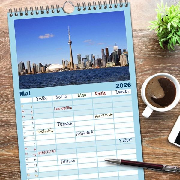 PRAKTISCH - übersichtlicher Familienkalender mit 5 Spalten für bis zu 5 Personen für mehr Struktur im Alltag - so bleiben alle Termine im Blick!ÜBERSICHTLICH - mit farblich getrennten Wochen- und Feiertagen. Die einzelnen Felder bieten genügend Platz für Eintragungen. So macht Organisieren Spaß!FANTASTISCHE BILDER - Dieser Planer ist nicht nur eine nützliche Hilfe im Alltag, sondern schmückt gleichzeitig Ihr Zuhause. Ideal auch als Geschenk.FÜR ALLE STIFTE GEEIGNET - ganz egal, ob Sie lieber mit Kugelschreiber oder Bleistift schreiben.NACHHALTIG - deutliche Abfallreduzierung durch bedarfsgerechte Einzelstückfertigung, umweltfreundliches FSC-zertifiziertes Papier, Produktion in Deutschland, klimabewusste Logistik.Stadt am Ontariosee von Autor(in): Helene Seidl