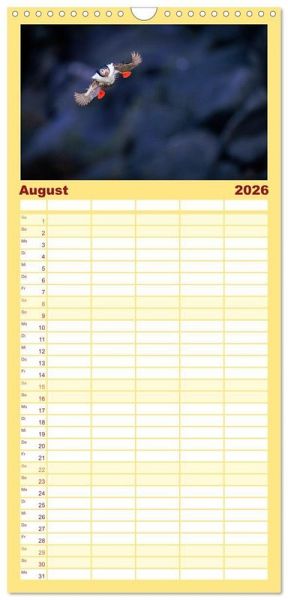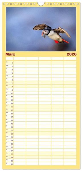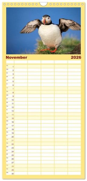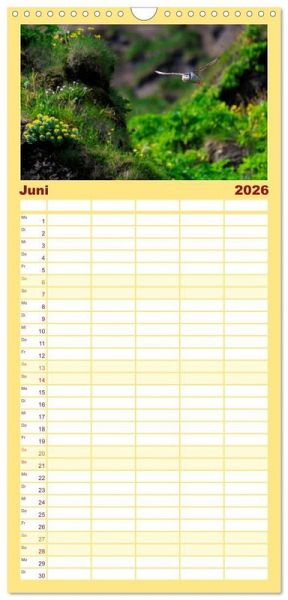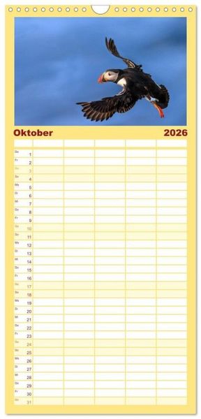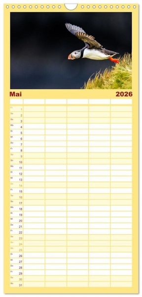 PRAKTISCH - übersichtlicher Familienkalender mit 5 Spalten für bis zu 5 Personen für mehr Struktur im Alltag - so bleiben alle Termine im Blick!ÜBERSICHTLICH - mit farblich getrennten Wochen- und Feiertagen. Die einzelnen Felder bieten genügend Platz für Eintragungen. So macht Organisieren Spaß!FANTASTISCHE BILDER - Dieser Planer ist nicht nur eine nützliche Hilfe im Alltag, sondern schmückt gleichzeitig Ihr Zuhause. Ideal auch als Geschenk.FÜR ALLE STIFTE GEEIGNET - ganz egal, ob Sie lieber mit Kugelschreiber oder Bleistift schreiben.NACHHALTIG - deutliche Abfallreduzierung durch bedarfsgerechte Einzelstückfertigung, umweltfreundliches FSC-zertifiziertes Papier, Produktion in Deutschland, klimabewusste Logistik.Papageientaucher (Puffins) auf Island in hochwertigen Fotografien von Autor(in): Gerd-Uwe Neukamp