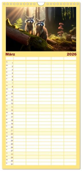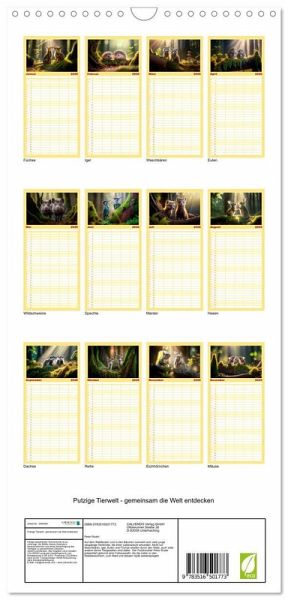 PRAKTISCH - übersichtlicher Familienkalender mit 5 Spalten für bis zu 5 Personen für mehr Struktur im Alltag - so bleiben alle Termine im Blick!ÜBERSICHTLICH - mit farblich getrennten Wochen- und Feiertagen. Die einzelnen Felder bieten genügend Platz für Eintragungen. So macht Organisieren Spaß!FANTASTISCHE BILDER - Dieser Planer ist nicht nur eine nützliche Hilfe im Alltag, sondern schmückt gleichzeitig Ihr Zuhause. Ideal auch als Geschenk.FÜR ALLE STIFTE GEEIGNET - ganz egal, ob Sie lieber mit Kugelschreiber oder Bleistift schreiben.NACHHALTIG - deutliche Abfallreduzierung durch bedarfsgerechte Einzelstückfertigung, umweltfreundliches FSC-zertifiziertes Papier, Produktion in Deutschland, klimabewusste Logistik.Possierliche Waldbewohner erobern ihren Lebensraum. von Autor(in): Peter Roder