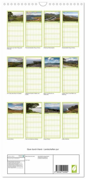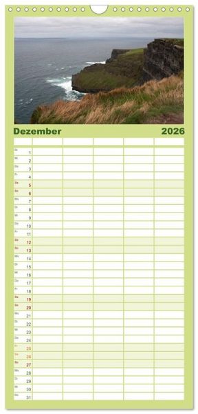 PRAKTISCH - übersichtlicher Familienkalender mit 5 Spalten für bis zu 5 Personen für mehr Struktur im Alltag - so bleiben alle Termine im Blick!ÜBERSICHTLICH - mit farblich getrennten Wochen- und Feiertagen. Die einzelnen Felder bieten genügend Platz für Eintragungen. So macht Organisieren Spaß!FANTASTISCHE BILDER - Dieser Planer ist nicht nur eine nützliche Hilfe im Alltag, sondern schmückt gleichzeitig Ihr Zuhause. Ideal auch als Geschenk.FÜR ALLE STIFTE GEEIGNET - ganz egal, ob Sie lieber mit Kugelschreiber oder Bleistift schreiben.NACHHALTIG - deutliche Abfallreduzierung durch bedarfsgerechte Einzelstückfertigung, umweltfreundliches FSC-zertifiziertes Papier, Produktion in Deutschland, klimabewusste Logistik.Die wunderschönen und abwechslungsreichen Landschaften Irlands sind immer eine Reise wert. von Autor(in): Antje Kügler
