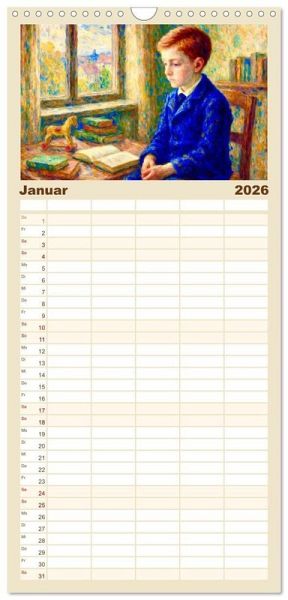 PRAKTISCH - übersichtlicher Familienkalender mit 5 Spalten für bis zu 5 Personen für mehr Struktur im Alltag - so bleiben alle Termine im Blick!ÜBERSICHTLICH - mit farblich getrennten Wochen- und Feiertagen. Die einzelnen Felder bieten genügend Platz für Eintragungen. So macht Organisieren Spaß!FANTASTISCHE BILDER - Dieser Planer ist nicht nur eine nützliche Hilfe im Alltag, sondern schmückt gleichzeitig Ihr Zuhause. Ideal auch als Geschenk.FÜR ALLE STIFTE GEEIGNET - ganz egal, ob Sie lieber mit Kugelschreiber oder Bleistift schreiben.NACHHALTIG - deutliche Abfallreduzierung durch bedarfsgerechte Einzelstückfertigung, umweltfreundliches FSC-zertifiziertes Papier, Produktion in Deutschland, klimabewusste Logistik.Vereint harmonisch Literatur und Kunst von Autor(in): Steffani Lehmann