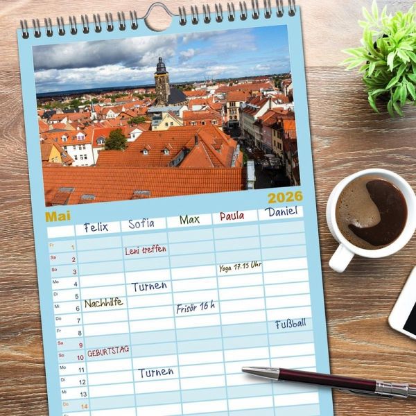 PRAKTISCH - übersichtlicher Familienkalender mit 5 Spalten für bis zu 5 Personen für mehr Struktur im Alltag - so bleiben alle Termine im Blick!ÜBERSICHTLICH - mit farblich getrennten Wochen- und Feiertagen. Die einzelnen Felder bieten genügend Platz für Eintragungen. So macht Organisieren Spaß!FANTASTISCHE BILDER - Dieser Planer ist nicht nur eine nützliche Hilfe im Alltag, sondern schmückt gleichzeitig Ihr Zuhause. Ideal auch als Geschenk.FÜR ALLE STIFTE GEEIGNET - ganz egal, ob Sie lieber mit Kugelschreiber oder Bleistift schreiben.NACHHALTIG - deutliche Abfallreduzierung durch bedarfsgerechte Einzelstückfertigung, umweltfreundliches FSC-zertifiziertes Papier, Produktion in Deutschland, klimabewusste Logistik.Gotha: Residenzstadt voller Geschichte und Kultur von Autor(in): drachenkind-fotografie