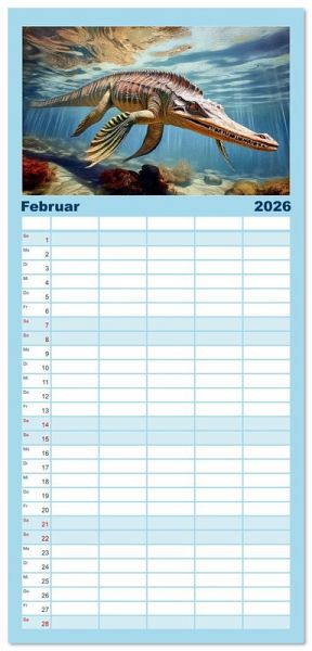 Februar: Ichthiosaurier, Fundorte weltweit, Untertrias bis Oberkreide, 2 bis 3,3 Meter lang