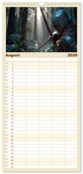 PRAKTISCH - übersichtlicher Familienkalender mit 5 Spalten für bis zu 5 Personen für mehr Struktur im Alltag - so bleiben alle Termine im Blick!ÜBERSICHTLICH - mit farblich getrennten Wochen- und Feiertagen. Die einzelnen Felder bieten genügend Platz für Eintragungen. So macht Organisieren Spaß!FANTASTISCHE BILDER - Dieser Planer ist nicht nur eine nützliche Hilfe im Alltag, sondern schmückt gleichzeitig Ihr Zuhause. Ideal auch als Geschenk.FÜR ALLE STIFTE GEEIGNET - ganz egal, ob Sie lieber mit Kugelschreiber oder Bleistift schreiben.NACHHALTIG - deutliche Abfallreduzierung durch bedarfsgerechte Einzelstückfertigung, umweltfreundliches FSC-zertifiziertes Papier, Produktion in Deutschland, klimabewusste Logistik.Eine Reise ins Mittelalter von Autor(in): Melanie Viola