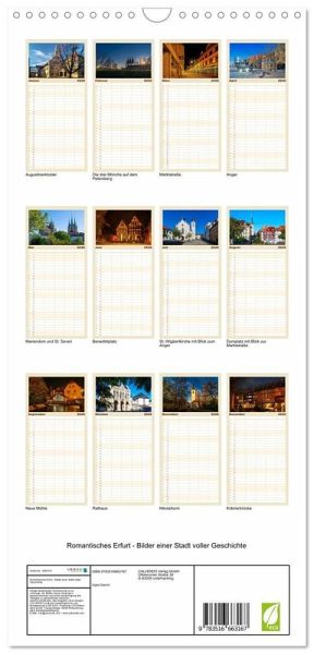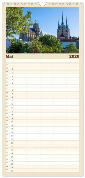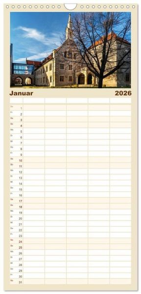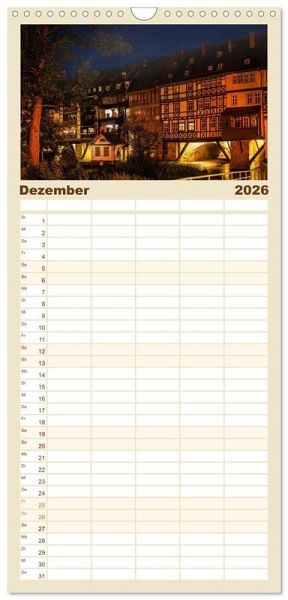 PRAKTISCH - übersichtlicher Familienkalender mit 5 Spalten für bis zu 5 Personen für mehr Struktur im Alltag - so bleiben alle Termine im Blick!ÜBERSICHTLICH - mit farblich getrennten Wochen- und Feiertagen. Die einzelnen Felder bieten genügend Platz für Eintragungen. So macht Organisieren Spaß!FANTASTISCHE BILDER - Dieser Planer ist nicht nur eine nützliche Hilfe im Alltag, sondern schmückt gleichzeitig Ihr Zuhause. Ideal auch als Geschenk.FÜR ALLE STIFTE GEEIGNET - ganz egal, ob Sie lieber mit Kugelschreiber oder Bleistift schreiben.NACHHALTIG - deutliche Abfallreduzierung durch bedarfsgerechte Einzelstückfertigung, umweltfreundliches FSC-zertifiziertes Papier, Produktion in Deutschland, klimabewusste Logistik.Auf 13 traumhaften Fotos zeigt die Autorin die wunderschöne mittelalterliche Altstadt Erfurts von Autor(in): SiSta-Tierfoto
