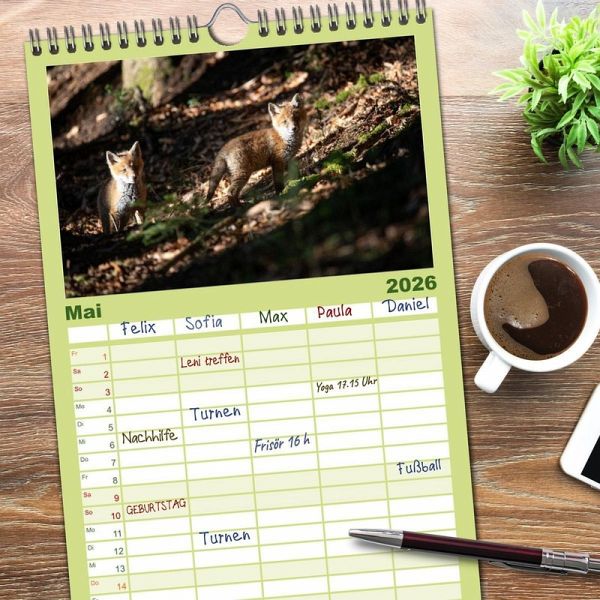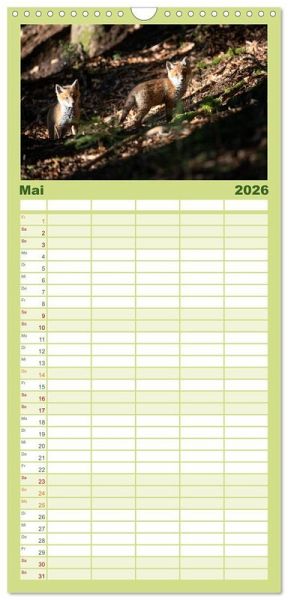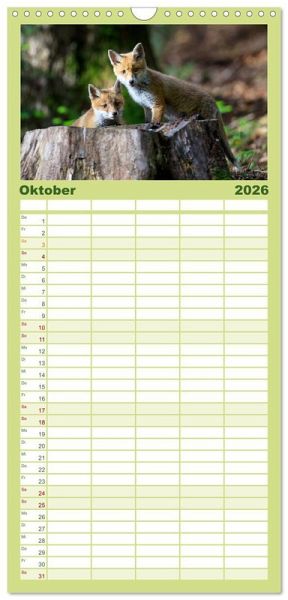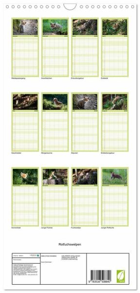 ür mehr Struktur im Alltag - so bleiben alle Termine im Blick!ÜBERSICHTLICH - mit farblich getrennten Wochen- und Feiertagen. Die einzelnen Felder bieten genügend Platz für Eintragungen. So macht Organisieren Spaß!FANTASTISCHE BILDER - Dieser Planer ist nicht nur eine nützliche Hilfe im Alltag, sondern schmückt gleichzeitig Ihr Zuhause. Ideal auch als Geschenk.FÜR ALLE STIFTE GEEIGNET - ganz egal, ob Sie lieber mit Kugelschreiber oder Bleistift schreiben.NACHHALTIG - deutliche Abfallreduzierung durch bedarfsgerechte Einzelstückfertigung, umweltfreundliches FSC-zertifiziertes Papier, Produktion in Deutschland, klimabewusste Logistik.Einzigartige Bilder von neugierigen, jungen Füchsen im Emmental von Autor(in): David Oberholzer