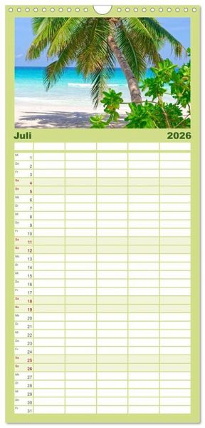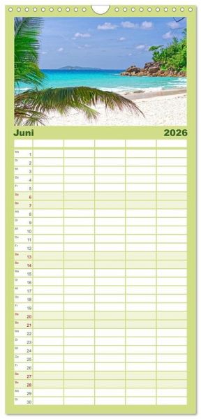 PRAKTISCH - übersichtlicher Familienkalender mit 5 Spalten für bis zu 5 Personen für mehr Struktur im Alltag - so bleiben alle Termine im Blick!ÜBERSICHTLICH - mit farblich getrennten Wochen- und Feiertagen. Die einzelnen Felder bieten genügend Platz für Eintragungen. So macht Organisieren Spaß!FANTASTISCHE BILDER - Dieser Planer ist nicht nur eine nützliche Hilfe im Alltag, sondern schmücktgleichzeitig Ihr Zuhause. Ideal auch als Geschenk.FÜR ALLE STIFTE GEEIGNET - ganz egal, ob Sie lieber mit Kugelschreiber oder Bleistift schreiben.NACHHALTIG - deutliche Abfallreduzierung durch bedarfsgerechte Einzelstückfertigung, umweltfreundliches FSC-zertifiziertes Papier, Produktion in Deutschland, klimabewusste Logistik.Sonne, Strand und Meer für alle, die das Paradies suchen von Autor(in): Hans Rodewald CreativK.de