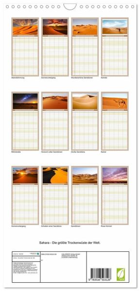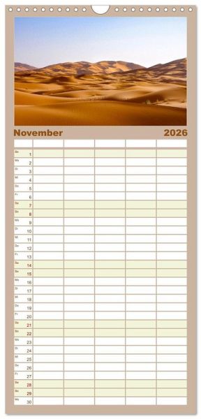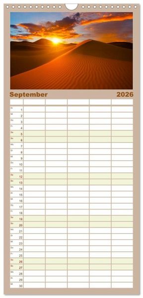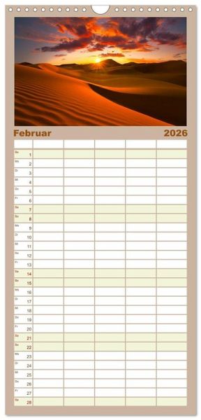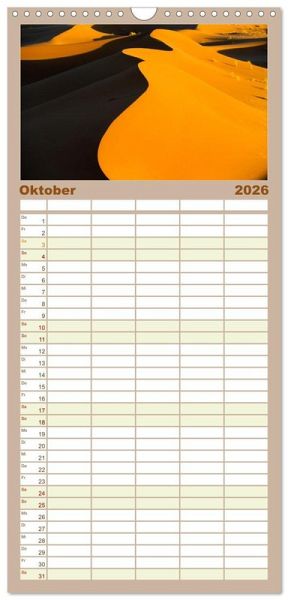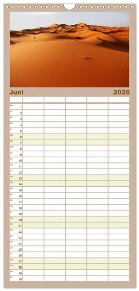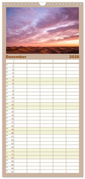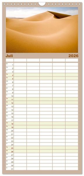 ender mit 5 Spalten für bis zu 5 Personen für mehr Struktur im Alltag - so bleiben alle Termine im Blick!ÜBERSICHTLICH - mit farblich getrennten Wochen- und Feiertagen. Die einzelnen Felder bieten genügend Platz für Eintragungen. So macht Organisieren Spaß!FANTASTISCHE BILDER - Dieser Planer ist nicht nur eine nützliche Hilfe im Alltag, sondern schmückt gleichzeitig Ihr Zuhause. Ideal auch als Geschenk.FÜR ALLE STIFTE GEEIGNET - ganz egal, ob Sie lieber mit Kugelschreiber oder Bleistift schreiben.NACHHALTIG - deutliche Abfallreduzierung durch bedarfsgerechte Einzelstückfertigung, umweltfreundliches FSC-zertifiziertes Papier, Produktion in Deutschland, klimabewusste Logistik.Wunderschöne Sanddünen. von Autor(in): Happy Monkey
