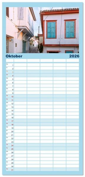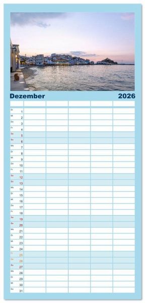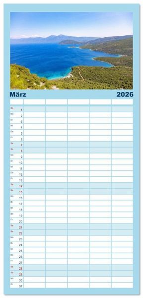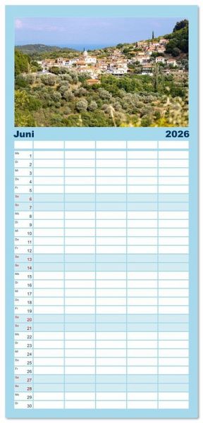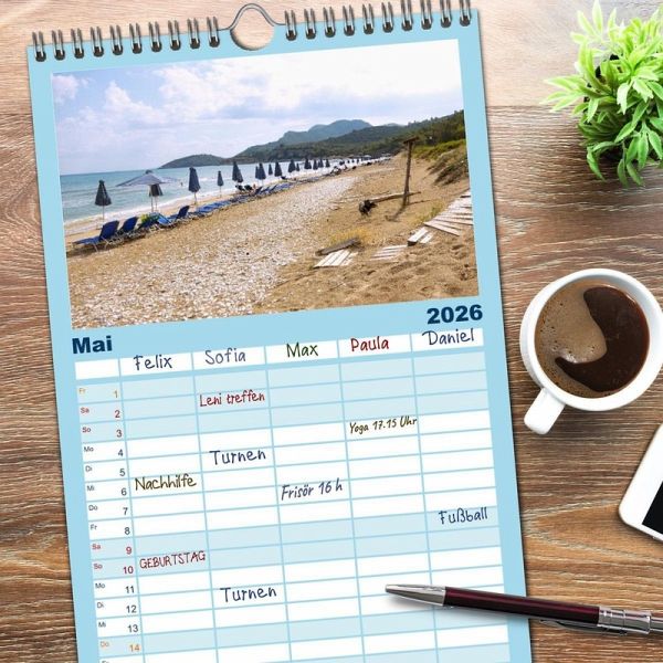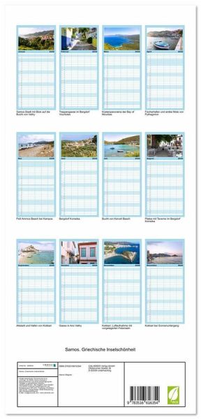 PRAKTISCH - übersichtlicher Familienkalender mit 5 Spalten für bis zu 5 Personen für mehr Struktur im Alltag - so bleiben alle Termine im Blick!ÜBERSICHTLICH - mit farblich getrennten Wochen- und Feiertagen. Die einzelnen Felder bieten genügend Platz für Eintragungen. So macht Organisieren Spaß!FANTASTISCHE BILDER - Dieser Planer ist nicht nur eine nützliche Hilfe im Alltag, sondern schmückt gleichzeitig Ihr Zuhause. Ideal auch als Geschenk.FÜR ALLE STIFTE GEEIGNET - ganz egal, ob Sie lieber mit Kugelschreiber oder Bleistift schreiben.NACHHALTIG - deutliche Abfallreduzierung durch bedarfsgerechte Einzelstückfertigung, umweltfreundliches FSC-zertifiziertes Papier, Produktion in Deutschland, klimabewusste Logistik.Erleben Sie die Ägäisinsel Samos in ihren schönsten Facetten. von Autor(in): Hanna Wagner