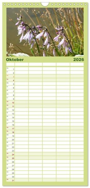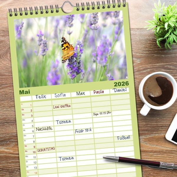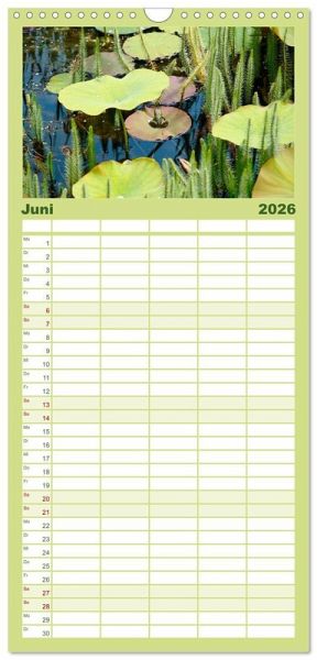 PRAKTISCH - übersichtlicher Familienkalender mit 5 Spalten für bis zu 5 Personen für mehr Struktur im Alltag - so bleiben alle Termine im Blick!ÜBERSICHTLICH - mit farblich getrennten Wochen- und Feiertagen. Die einzelnen Felder bieten genügend Platz für Eintragungen. So macht Organisieren Spaß!FANTASTISCHE BILDER - Dieser Planer ist nicht nur eine nützliche Hilfe im Alltag, sondern schmückt gleichzeitig Ihr Zuhause. Ideal auch als Geschenk.FÜR ALLE STIFTE GEEIGNET - ganz egal, ob Sie lieber mit Kugelschreiber oder Bleistift schreiben.NACHHALTIG - deutliche Abfallreduzierung durch bedarfsgerechte Einzelstückfertigung, umweltfreundliches FSC-zertifiziertes Papier, Produktion in Deutschland, klimabewusste Logistik.Die Seele baumeln lassen inmitten von Flora und Fauna von Autor(in): Gisela Kruse