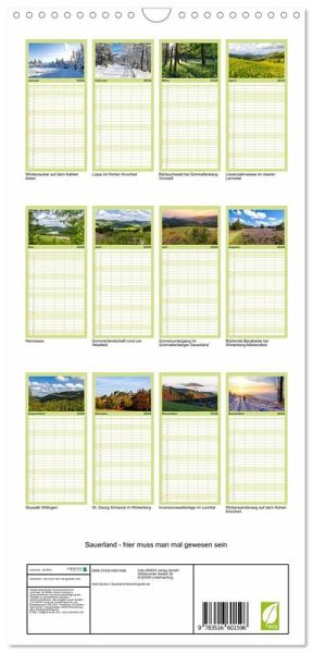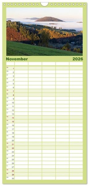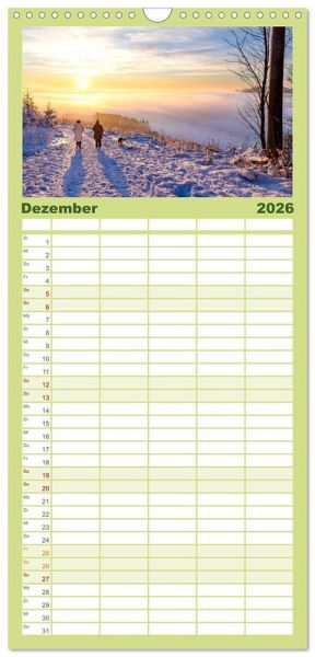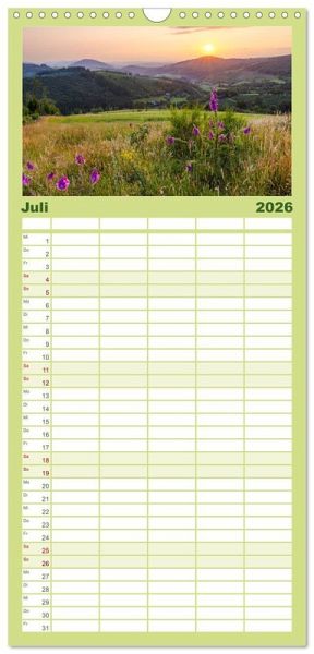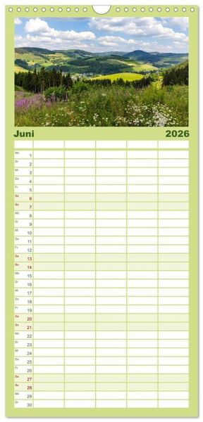 PRAKTISCH - übersichtlicher Familienkalender mit 5 Spalten für bis zu 5 Personen für mehr Struktur im Alltag - so bleiben alle Termine im Blick!ÜBERSICHTLICH - mit farblich getrennten Wochen- und Feiertagen. Die einzelnen Felder bieten genügend Platz für Eintragungen. So macht Organisieren Spaß!FANTASTISCHE BILDER - Dieser Planer ist nicht nur eine nützliche Hilfe im Alltag, sondern schmückt gleichzeitig Ihr Zuhause. Ideal auch als Geschenk.FÜR ALLE STIFTE GEEIGNET - ganz egal, ob Sie lieber mit Kugelschreiber oder Bleistift schreiben.NACHHALTIG - deutliche Abfallreduzierung durch bedarfsgerechte Einzelstückfertigung, umweltfreundliches FSC-zertifiziertes Papier, Produktion in Deutschland, klimabewusste Logistik.Die Mittelgebirgsregion Sauerland verspricht unvergessliche Erlebnisse in der Natur. von Autor(in): Heidi Bücker