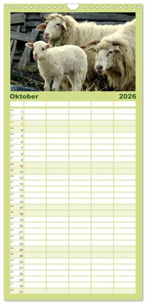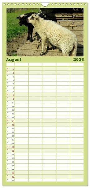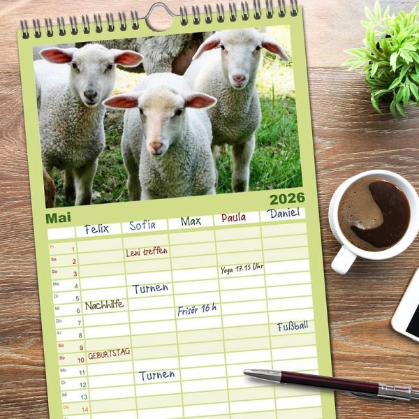 PRAKTISCH - übersichtlicher Familienkalender mit 5 Spalten für bis zu 5 Personen für mehr Struktur im Alltag - so bleiben alle Termine im Blick!ÜBERSICHTLICH - mit farblich getrennten Wochen- und Feiertagen. Die einzelnen Felder bieten genügend Platz für Eintragungen. So macht Organisieren Spaß!FANTASTISCHE BILDER - Dieser Planer ist nicht nur eine nützliche Hilfe im Alltag, sondern schmückt gleichzeitig Ihr Zuhause. Ideal auch als Geschenk.FÜR ALLE STIFTE GEEIGNET - ganz egal, ob Sie lieber mit Kugelschreiber oder Bleistift schreiben.NACHHALTIG - deutliche Abfallreduzierung durch bedarfsgerechte Einzelstückfertigung, umweltfreundliches FSC-zertifiziertes Papier, Produktion in Deutschland, klimabewusste Logistik.Bildhübsche Schafe auf Wiesen und Weiden von Autor(in): Sabine Löwer