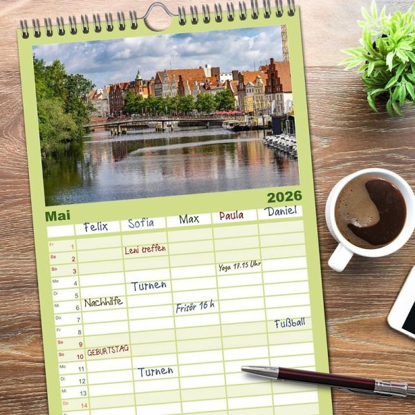 PRAKTISCH - übersichtlicher Familienkalender mit 5 Spalten für bis zu 5 Personen für mehr Struktur im Alltag - so bleiben alle Termine im Blick!ÜBERSICHTLICH - mit farblich getrennten Wochen- und Feiertagen. Die einzelnen Felder bieten genügend Platz für Eintragungen. So macht Organisieren Spaß!FANTASTISCHE BILDER - Dieser Planer ist nicht nur eine nützliche Hilfe im Alltag, sondern schmückt gleichzeitig Ihr Zuhause. Ideal auch als Geschenk.FÜR ALLE STIFTE GEEIGNET - ganz egal, ob Sie lieber mit Kugelschreiber oder Bleistift schreiben.NACHHALTIG - deutliche Abfallreduzierung durch bedarfsgerechte Einzelstückfertigung, umweltfreundliches FSC-zertifiziertes Papier, Produktion in Deutschland, klimabewusste Logistik.12 Monate mit der wunderbaren Hansestadt und UNESCO Welterbe Lübeck. von Autor(in): Peter Schickert