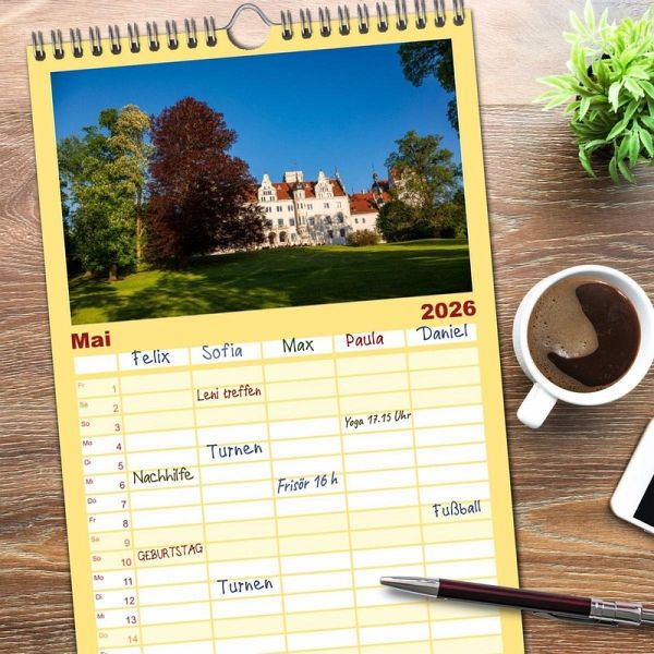 PRAKTISCH - übersichtlicher Familienkalender mit 5 Spalten für bis zu 5 Personen für mehr Struktur im Alltag - so bleiben alle Termine im Blick!ÜBERSICHTLICH - mit farblich getrennten Wochen- und Feiertagen. Die einzelnen Felder bieten genügend Platz für Eintragungen. So macht Organisieren Spaß!FANTASTISCHE BILDER - Dieser Planer ist nicht nur eine nützliche Hilfe im Alltag, sondern schmückt gleichzeitig Ihr Zuhause. Ideal auch als Geschenk.FÜR ALLE STIFTE GEEIGNET - ganz egal, ob Sie lieber mit Kugelschreiber oder Bleistift schreiben.NACHHALTIG - deutliche Abfallreduzierung durch bedarfsgerechte Einzelstückfertigung, umweltfreundliches FSC-zertifiziertes Papier, Produktion in Deutschland, klimabewusste Logistik.Unbekannte Schlösser Brandenburgs von Autor(in): Johann Scheibner