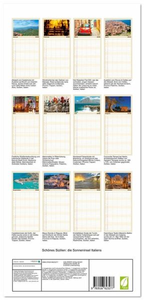 PRAKTISCH - übersichtlicher Familienkalender mit 5 Spalten für bis zu 5 Personen für mehr Struktur im Alltag - so bleiben alle Termine im Blick!ÜBERSICHTLICH - mit farblich getrennten Wochen- und Feiertagen. Die einzelnen Felder bieten genügend Platz für Eintragungen. So macht Organisieren Spaß!FANTASTISCHE BILDER - Dieser Planer ist nicht nur eine nützliche Hilfe im Alltag, sondern schmückt gleichzeitig Ihr Zuhause. Ideal auch als Geschenk.FÜR ALLE STIFTE GEEIGNET - ganz egal, ob Sie lieber mit Kugelschreiber oder Bleistift schreiben.NACHHALTIG - deutliche Abfallreduzierung durch bedarfsgerechte Einzelstückfertigung, umweltfreundliches FSC-zertifiziertes Papier, Produktion in Deutschland, klimabewusste Logistik.Sizilien: Sehnsucht nach Sonne, Strand und Meer von Autor(in): CALVENDO Verlag
