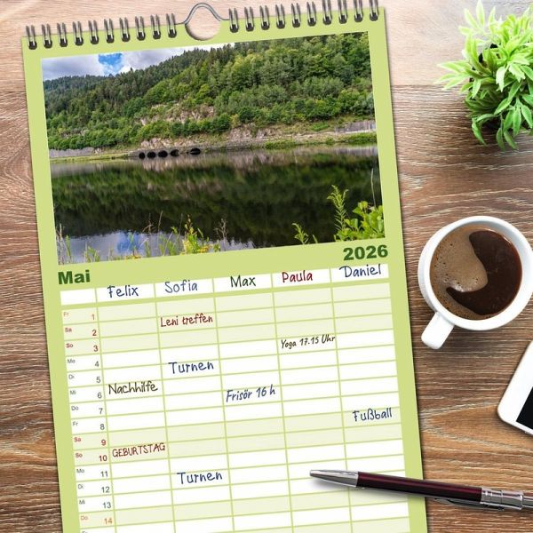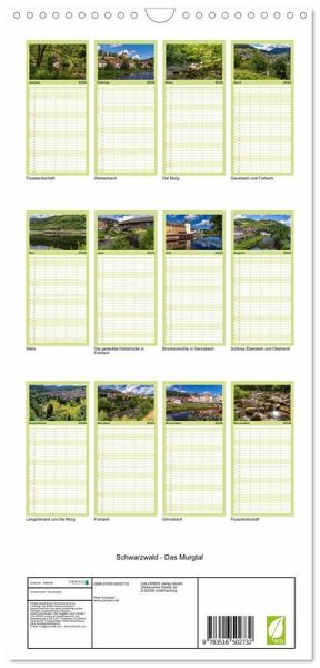 PRAKTISCH - übersichtlicher Familienkalender mit 5 Spalten für bis zu 5 Personen für mehr Struktur im Alltag - so bleiben alle Termine im Blick!ÜBERSICHTLICH - mit farblich getrennten Wochen- und Feiertagen. Die einzelnen Felder bieten genügend Platz für Eintragungen. So macht Organisieren Spaß!FANTASTISCHE BILDER - Dieser Planer ist nicht nur eine nützliche Hilfe im Alltag, sondern schmückt gleichzeitig Ihr Zuhause. Ideal auch als Geschenk.FÜR ALLE STIFTE GEEIGNET - ganz egal, ob Sie lieber mit Kugelschreiber oder Bleistift schreiben.NACHHALTIG - deutliche Abfallreduzierung durch bedarfsgerechte Einzelstückfertigung, umweltfreundliches FSC-zertifiziertes Papier, Produktion in Deutschland, klimabewusste Logistik.Die malerische Flusslandschaft an der Murg im Schwarzwald. von Autor(in): Peter Schickert