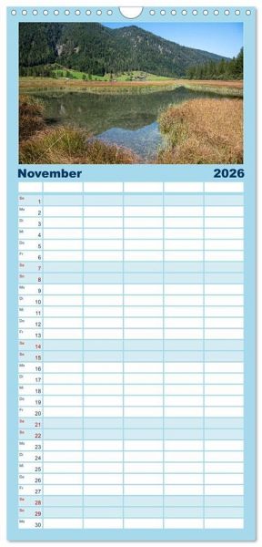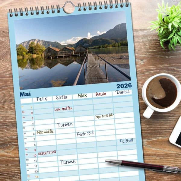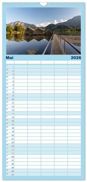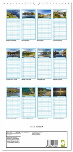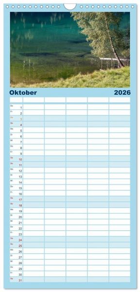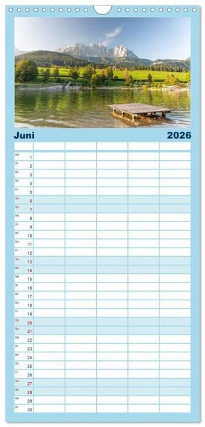 PRAKTISCH - übersichtlicher Familienkalender mit 5 Spalten für bis zu 5 Personen für mehr Struktur im Alltag - so bleiben alle Termine im Blick!ÜBERSICHTLICH - mit farblich getrennten Wochen- und Feiertagen. Die einzelnen Felder bieten genügend Platz für Eintragungen. So macht Organisieren Spaß!FANTASTISCHE BILDER - Dieser Planer ist nicht nur eine nützliche Hilfe im Alltag, sondern schmückt gleichzeitig Ihr Zuhause. Ideal auch als Geschenk.FÜR ALLE STIFTE GEEIGNET - ganz egal, ob Sie lieber mit Kugelschreiber oder Bleistift schreiben.NACHHALTIG - deutliche Abfallreduzierung durch bedarfsgerechte Einzelstückfertigung, umweltfreundliches FSC-zertifiziertes Papier, Produktion in Deutschland, klimabewusste Logistik.Wunderschöne Seen von der Steiermark bis Tirol. von Autor(in): Katrin Streiparth