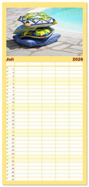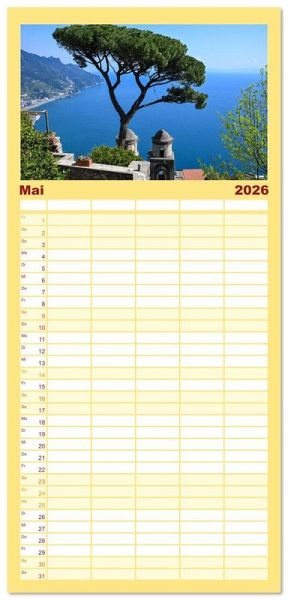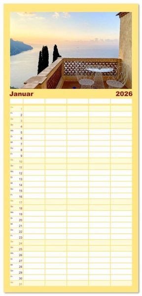 PRAKTISCH - übersichtlicher Familienkalender mit 5 Spalten für bis zu 5 Personen für mehr Struktur im Alltag - so bleiben alle Termine im Blick!ÜBERSICHTLICH - mit farblich getrennten Wochen- und Feiertagen. Die einzelnen Felder bieten genügend Platz für Eintragungen. So macht Organisieren Spaß!FANTASTISCHE BILDER - Dieser Planer ist nicht nur eine nützliche Hilfe im Alltag, sondern schmückt gleichzeitig Ihr Zuhause. Ideal auch als Geschenk.FÜR ALLE STIFTE GEEIGNET - ganz egal, ob Sie lieber mit Kugelschreiber oder Bleistift schreiben.NACHHALTIG - deutliche Abfallreduzierung durch bedarfsgerechte Einzelstückfertigung, umweltfreundliches FSC-zertifiziertes Papier, Produktion in Deutschland, klimabewusste Logistik.Jeder Blick ist ein Versprechen. von Autor(in): Maria Remo