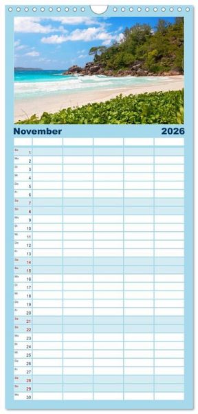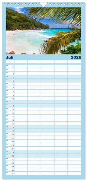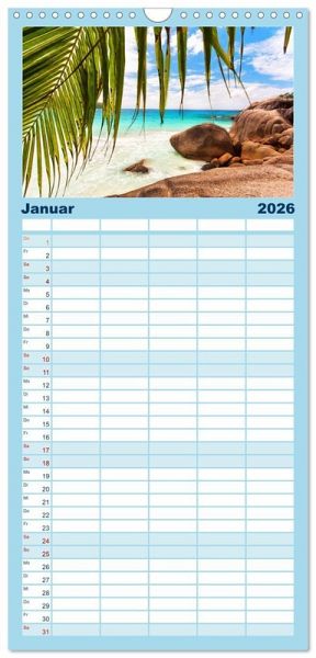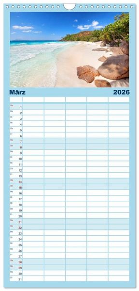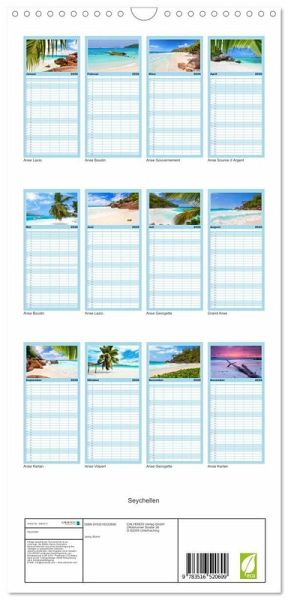Spalten für bis zu 5 Personen für mehr Struktur im Alltag - so bleiben alle Termine im Blick!ÜBERSICHTLICH - mit farblich getrennten Wochen- und Feiertagen. Die einzelnen Felder bieten genügend Platz für Eintragungen. So macht Organisieren Spaß!FANTASTISCHE BILDER - Dieser Planer ist nicht nur eine nützliche Hilfe im Alltag, sondern schmückt gleichzeitig Ihr Zuhause. Ideal auch als Geschenk.FÜR ALLE STIFTE GEEIGNET - ganz egal, ob Sie lieber mit Kugelschreiber oder Bleistift schreiben.NACHHALTIG - deutliche Abfallreduzierung durch bedarfsgerechte Einzelstückfertigung, umweltfreundliches FSC-zertifiziertes Papier, Produktion in Deutschland, klimabewusste Logistik.Seychellen - Inselparadies im Indischen Ozean von Autor(in): Jenny Sturm