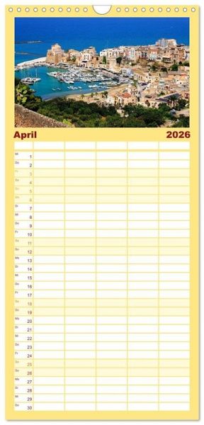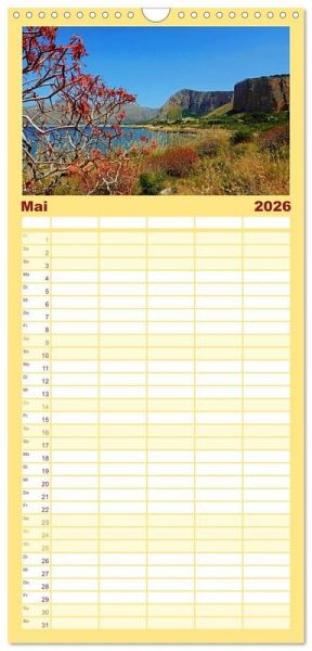 PRAKTISCH - übersichtlicher Familienkalender mit 5 Spalten für bis zu 5 Personen für mehr Struktur im Alltag - so bleiben alle Termine im Blick!ÜBERSICHTLICH - mit farblich getrennten Wochen- und Feiertagen. Die einzelnen Felder bieten genügend Platz für Eintragungen. So macht Organisieren Spaß!FANTASTISCHE BILDER - Dieser Planer ist nicht nur eine nützliche Hilfe im Alltag, sondern schmückt gleichzeitig Ihr Zuhause. Ideal auch als Geschenk.FÜR ALLE STIFTE GEEIGNET - ganz egal, ob Sie lieber mit Kugelschreiber oder Bleistift schreiben.NACHHALTIG - deutliche Abfallreduzierung durch bedarfsgerechte Einzelstückfertigung, umweltfreundliches FSC-zertifiziertes Papier, Produktion in Deutschland, klimabewusste Logistik.Der wilde Nordwesten Siziliens ist noch ein echter Geheimtipp und hält einige Überraschungen bereit: von Autor(in): Stefanie Steiner
