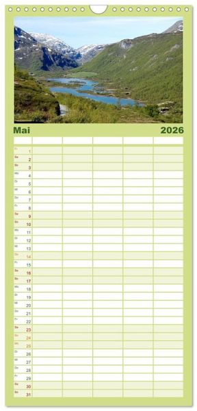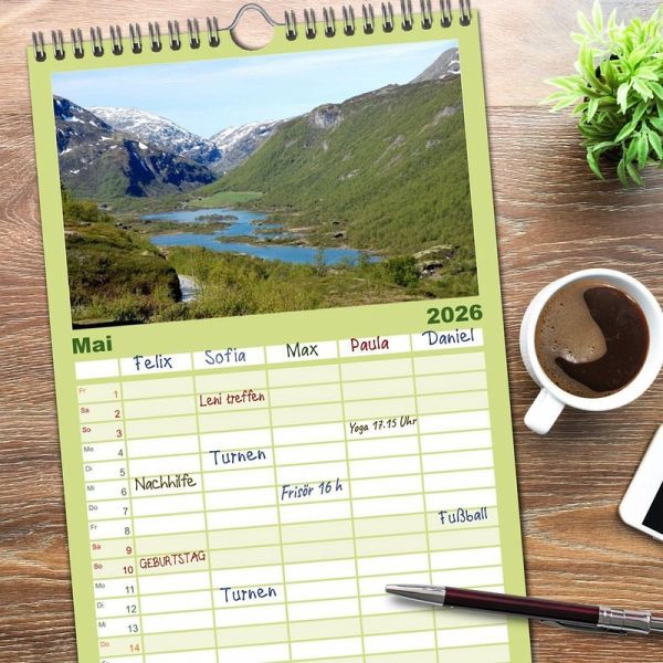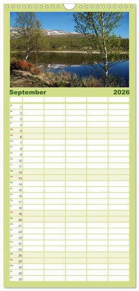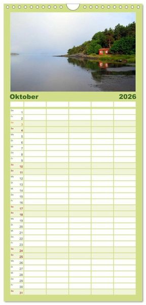 PRAKTISCH - übersichtlicher Familienkalender mit 5 Spalten für bis zu 5 Personen für mehr Struktur im Alltag - so bleiben alle Termine im Blick!ÜBERSICHTLICH - mit farblich getrennten Wochen- und Feiertagen. Die einzelnen Felder bieten genügend Platz für Eintragungen. So macht Organisieren Spaß!FANTASTISCHE BILDER - Dieser Planer ist nicht nur eine nützliche Hilfe im Alltag, sondern schmückt gleichzeitig Ihr Zuhause. Ideal auch als Geschenk.FÜR ALLE STIFTE GEEIGNET - ganz egal, ob Sie lieber mit Kugelschreiber oder Bleistift schreiben.NACHHALTIG - deutliche Abfallreduzierung durch bedarfsgerechte Einzelstückfertigung, umweltfreundliches FSC-zertifiziertes Papier, Produktion in Deutschland, klimabewusste Logistik.Skandinavien, Landschaften in Norwegen, Finnland und Schweden von Autor(in): GUGIGEI