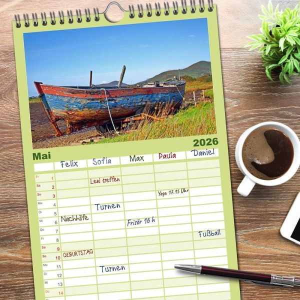 PRAKTISCH - übersichtlicher Familienkalender mit 5 Spalten für bis zu 5 Personen für mehr Struktur im Alltag - so bleiben alle Termine im Blick!ÜBERSICHTLICH - mit farblich getrennten Wochen- und Feiertagen. Die einzelnen Felder bieten genügend Platz für Eintragungen. So macht Organisieren Spaß!FANTASTISCHE BILDER - Dieser Planer ist nicht nur eine nützliche Hilfe im Alltag, sondern schmückt gleichzeitig Ihr Zuhause. Ideal auch als Geschenk.FÜR ALLE STIFTE GEEIGNET - ganz egal, ob Sie lieber mit Kugelschreiber oder Bleistift schreiben.NACHHALTIG - deutliche Abfallreduzierung durch bedarfsgerechte Einzelstückfertigung, umweltfreundliches FSC-zertifiziertes Papier, Produktion in Deutschland, klimabewusste Logistik.Begeisternde Bilder aus Irlands Südwesten von Autor(in): Christoph Stempel