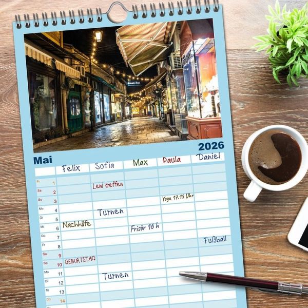 PRAKTISCH - übersichtlicher Familienkalender mit 5 Spalten für bis zu 5 Personen für mehr Struktur im Alltag - so bleiben alle Termine im Blick!ÜBERSICHTLICH - mit farblich getrennten Wochen- und Feiertagen. Die einzelnen Felder bieten genügend Platz für Eintragungen. So macht Organisieren Spaß!FANTASTISCHE BILDER - Dieser Planer ist nicht nur eine nützliche Hilfe im Alltag, sondern schmückt gleichzeitig Ihr Zuhause. Ideal auch als Geschenk.FÜR ALLE STIFTE GEEIGNET - ganz egal, ob Sie lieber mit Kugelschreiber oder Bleistift schreiben.NACHHALTIG - deutliche Abfallreduzierung durch bedarfsgerechte Einzelstückfertigung, umweltfreundliches FSC-zertifiziertes Papier, Produktion in Deutschland, klimabewusste Logistik.Stadt mit über zweitausendjährige Besiedlungsgeschichte von Autor(in): drachenkind-fotografie