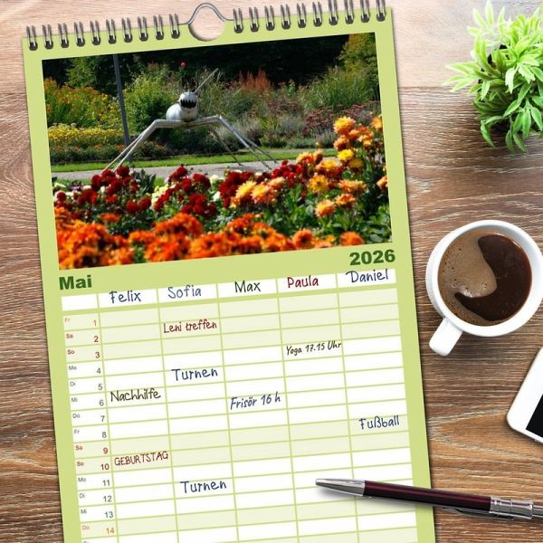ender mit 5 Spalten für bis zu 5 Personen für mehr Struktur im Alltag - so bleiben alle Termine im Blick!ÜBERSICHTLICH - mit farblich getrennten Wochen- und Feiertagen. Die einzelnen Felder bieten genügend Platz für Eintragungen. So macht Organisieren Spaß!FANTASTISCHE BILDER - Dieser Planer ist nicht nur eine nützliche Hilfe im Alltag, sondern schmückt gleichzeitig Ihr Zuhause. Ideal auch als Geschenk.FÜR ALLE STIFTE GEEIGNET - ganz egal, ob Sie lieber mit Kugelschreiber oder Bleistift schreiben.NACHHALTIG - deutliche Abfallreduzierung durch bedarfsgerechte Einzelstückfertigung, umweltfreundliches FSC-zertifiziertes Papier, Produktion in Deutschland, klimabewusste Logistik.Fotografischer Spaziergang durch die bergische Metropole von Autor(in): Udo Haafke
