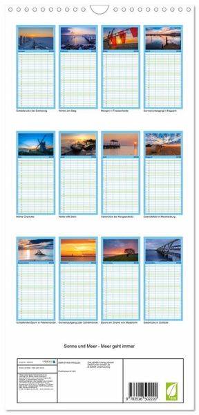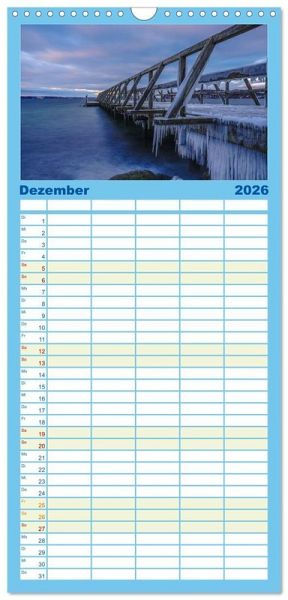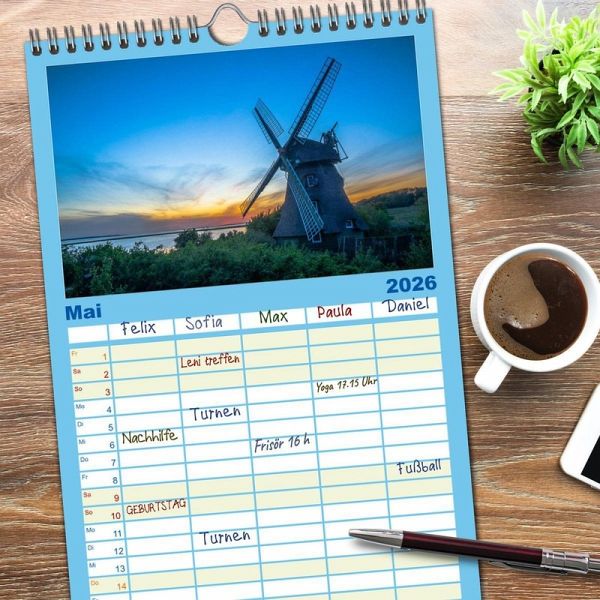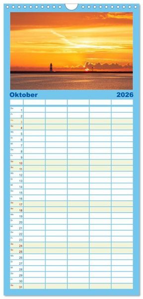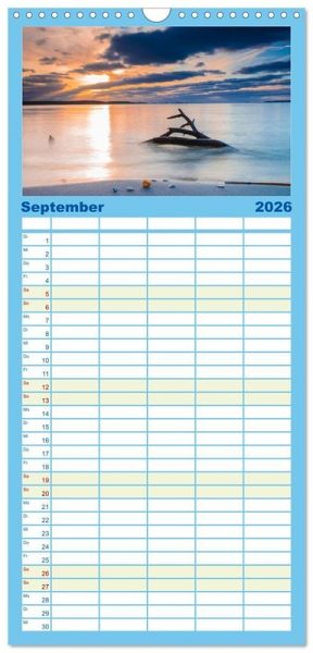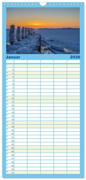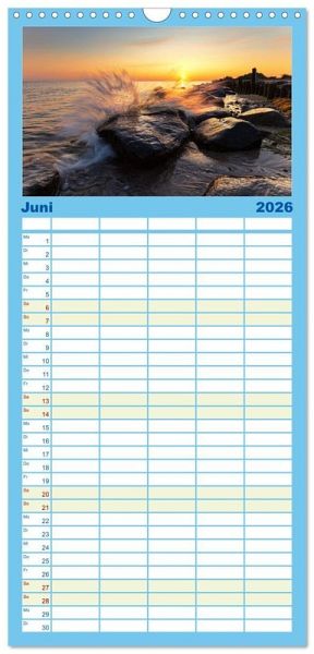 PRAKTISCH - übersichtlicher Familienkalender mit 5 Spalten für bis zu 5 Personen für mehr Struktur im Alltag - so bleiben alle Termine im Blick!ÜBERSICHTLICH - mit farblich getrennten Wochen- und Feiertagen. Die einzelnen Felder bieten genügend Platz für Eintragungen. So macht Organisieren Spaß!FANTASTISCHE BILDER - Dieser Planer ist nicht nur eine nützliche Hilfe im Alltag, sondern schmückt gleichzeitig Ihr Zuhause. Ideal auch als Geschenk.FÜR ALLE STIFTE GEEIGNET - ganz egal, ob Sie lieber mit Kugelschreiber oder Bleistift schreiben.NACHHALTIG - deutliche Abfallreduzierung durch bedarfsgerechte Einzelstückfertigung, umweltfreundliches FSC-zertifiziertes Papier, Produktion in Deutschland, klimabewusste Logistik.Bilder der Küste beim Sonnenauf- und Sonnenuntergang von Autor(in): Dirk Peddinghaus