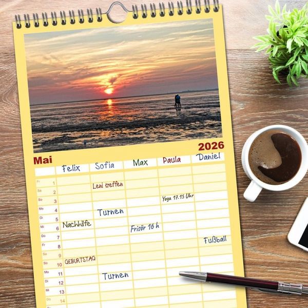 PRAKTISCH - übersichtlicher Familienkalender mit 5 Spalten für bis zu 5 Personen für mehr Struktur im Alltag - so bleiben alle Termine im Blick!ÜBERSICHTLICH - mit farblich getrennten Wochen- und Feiertagen. Die einzelnen Felder bieten genügend Platz für Eintragungen. So macht Organisieren Spaß!FANTASTISCHE BILDER - Dieser Planer ist nicht nur eine nützliche Hilfe im Alltag, sondern schmückt gleichzeitig Ihr Zuhause. Ideal auch als Geschenk.FÜR ALLE STIFTE GEEIGNET - ganz egal, ob Sie lieber mit Kugelschreiber oder Bleistift schreiben.NACHHALTIG - deutliche Abfallreduzierung durch bedarfsgerechte Einzelstückfertigung, umweltfreundliches FSC-zertifiziertes Papier, Produktion in Deutschland, klimabewusste Logistik.Momente die Unvergesslich bleiben von Autor(in): Detlef Thiemann
