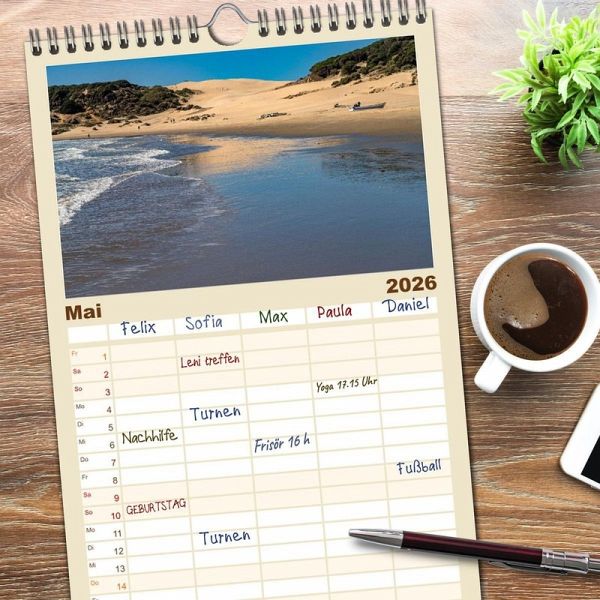 PRAKTISCH - übersichtlicher Familienkalender mit 5 Spalten für bis zu 5 Personen für mehr Struktur im Alltag - so bleiben alle Termine im Blick!ÜBERSICHTLICH - mit farblich getrennten Wochen- und Feiertagen. Die einzelnen Felder bieten genügend Platz für Eintragungen. So macht Organisieren Spaß!FANTASTISCHE BILDER - Dieser Planer ist nicht nur eine nützliche Hilfe im Alltag, sondern schmückt gleichzeitig Ihr Zuhause. Ideal auch als Geschenk.FÜR ALLE STIFTE GEEIGNET - ganz egal, ob Sie lieber mit Kugelschreiber oder Bleistift schreiben.NACHHALTIG - deutliche Abfallreduzierung durch bedarfsgerechte Einzelstückfertigung, umweltfreundliches FSC-zertifiziertes Papier, Produktion in Deutschland, klimabewusste Logistik.Die wunderbare spanische Küste zwischen Cadiz und Tarifa. von Autor(in): Peter Schickert
