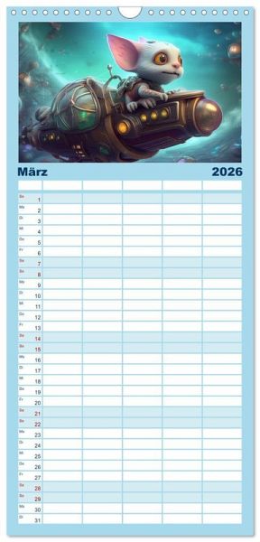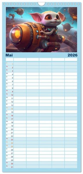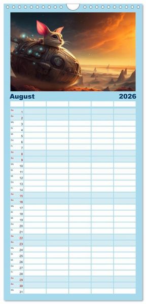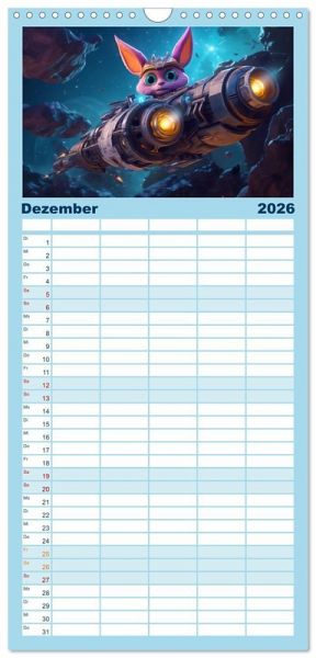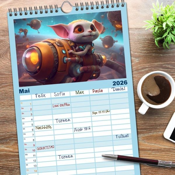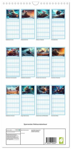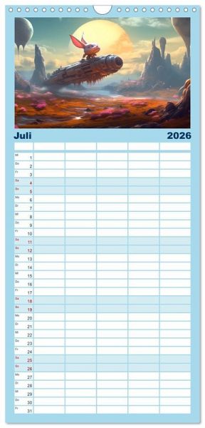 bersichtlicher Familienkalender mit 5 Spalten für bis zu 5 Personen für mehr Struktur im Alltag - so bleiben alle Termine im Blick!ÜBERSICHTLICH - mit farblich getrennten Wochen- und Feiertagen. Die einzelnen Felder bieten genügend Platz für Eintragungen. So macht Organisieren Spaß!FANTASTISCHE BILDER - Dieser Planer ist nicht nur eine nützliche Hilfe im Alltag, sondern schmückt gleichzeitig Ihr Zuhause. Ideal auch als Geschenk.FÜR ALLE STIFTE GEEIGNET - ganz egal, ob Sie lieber mit Kugelschreiber oder Bleistift schreiben.NACHHALTIG - deutliche Abfallreduzierung durch bedarfsgerechte Einzelstückfertigung, umweltfreundliches FSC-zertifiziertes Papier, Produktion in Deutschland, klimabewusste Logistik.Spannendes Weltraumabenteuer von Autor(in): Tim Schmidt
