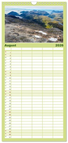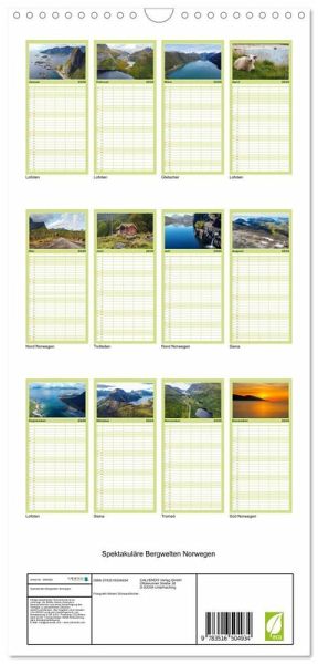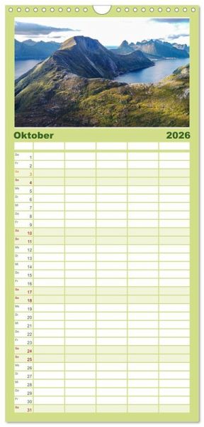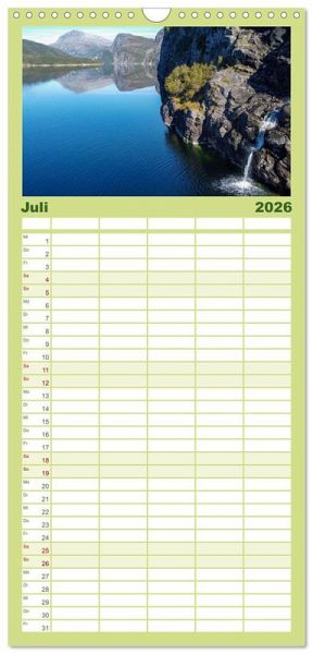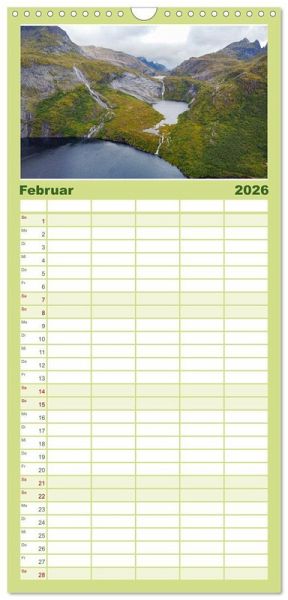 n für bis zu 5 Personen für mehr Struktur im Alltag - so bleiben alle Termine im Blick!ÜBERSICHTLICH - mit farblich getrennten Wochen- und Feiertagen. Die einzelnen Felder bieten genügend Platz für Eintragungen. So macht Organisieren Spaß!FANTASTISCHE BILDER - Dieser Planer ist nicht nur eine nützliche Hilfe im Alltag, sondern schmückt gleichzeitig Ihr Zuhause. Ideal auch als Geschenk.FÜR ALLE STIFTE GEEIGNET - ganz egal, ob Sie lieber mit Kugelschreiber oder Bleistift schreiben.NACHHALTIG - deutliche Abfallreduzierung durch bedarfsgerechte Einzelstückfertigung, umweltfreundliches FSC-zertifiziertes Papier, Produktion in Deutschland, klimabewusste Logistik.Kulissen Norwegens, Berge, Seen und Fjorde von Autor(in): Fotografin Schwarzfischer Miriam