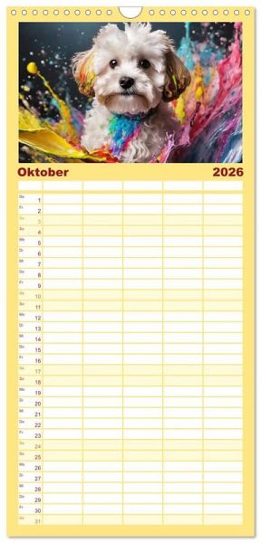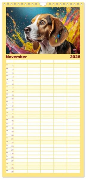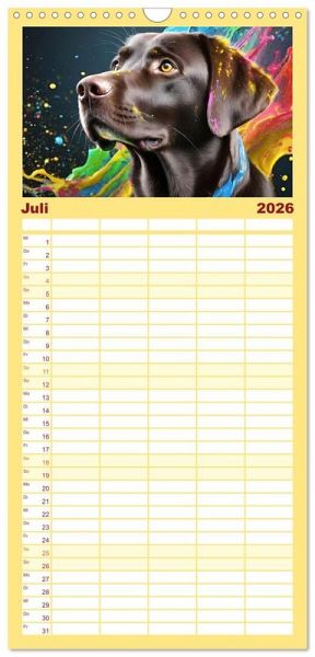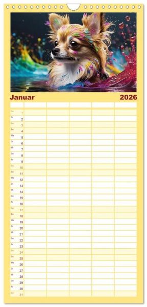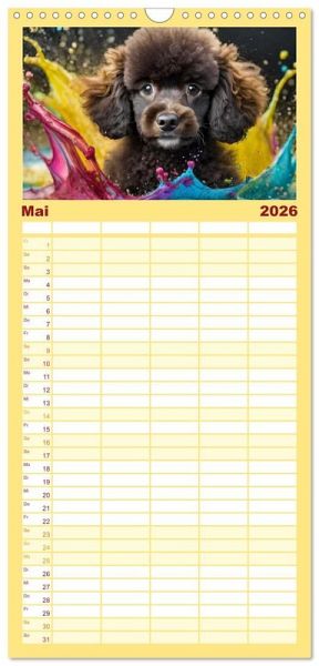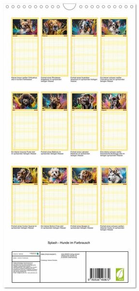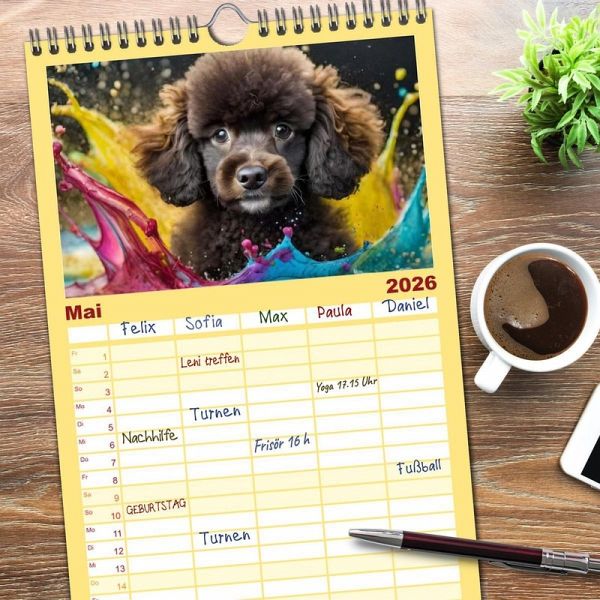 PRAKTISCH - übersichtlicher Familienkalender mit 5 Spalten für bis zu 5 Personen für mehr Struktur im Alltag - so bleiben alle Termine im Blick!ÜBERSICHTLICH - mit farblich getrennten Wochen- und Feiertagen. Die einzelnen Felder bieten genügend Platz für Eintragungen. So macht Organisieren Spaß!FANTASTISCHE BILDER - Dieser Planer ist nicht nur eine nützliche Hilfe im Alltag, sondern schmückt gleichzeitig Ihr Zuhause. Ideal auch als Geschenk.FÜR ALLE STIFTE GEEIGNET - ganz egal, ob Sie lieber mit Kugelschreiber oder Bleistift schreiben.NACHHALTIG - deutliche Abfallreduzierung durch bedarfsgerechte Einzelstückfertigung, umweltfreundliches FSC-zertifiziertes Papier, Produktion in Deutschland, klimabewusste Logistik.Hunde im farbigen Wasserbad von Autor(in): Fotodesign Verena Scholze