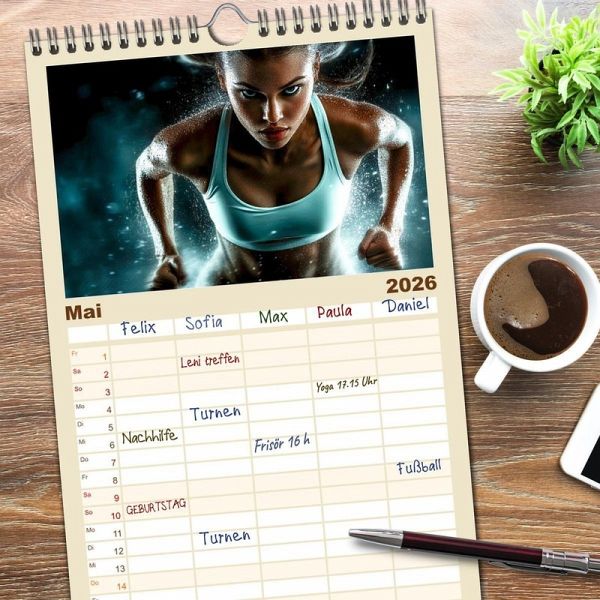 PRAKTISCH - übersichtlicher Familienkalender mit 5 Spalten für bis zu 5 Personen für mehr Struktur im Alltag - so bleiben alle Termine im Blick!ÜBERSICHTLICH - mit farblich getrennten Wochen- und Feiertagen. Die einzelnen Felder bieten genügend Platz für Eintragungen. So macht Organisieren Spaß!FANTASTISCHE BILDER - Dieser Planer ist nicht nur eine nützliche Hilfe im Alltag, sondern schmückt gleichzeitig Ihr Zuhause. Ideal auch als Geschenk.FÜR ALLE STIFTE GEEIGNET - ganz egal, ob Sie lieber mit Kugelschreiber oder Bleistift schreiben.NACHHALTIG - deutliche Abfallreduzierung durch bedarfsgerechte Einzelstückfertigung, umweltfreundliches FSC-zertifiziertes Papier, Produktion in Deutschland, klimabewusste Logistik.Wenn Athletik sich in Kunst verwandelt. von Autor(in): Peter Roder