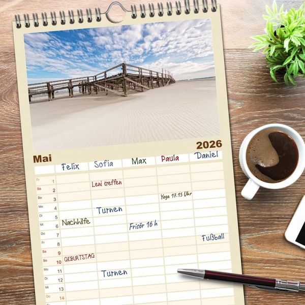 PRAKTISCH - übersichtlicher Familienkalender mit 5 Spalten für bis zu 5 Personen für mehr Struktur im Alltag - so bleiben alle Termine im Blick!ÜBERSICHTLICH - mit farblich getrennten Wochen- und Feiertagen. Die einzelnen Felder bieten genügend Platz für Eintragungen. So macht Organisieren Spaß!FANTASTISCHE BILDER - Dieser Planer ist nicht nur eine nützliche Hilfe im Alltag, sondern schmückt gleichzeitig Ihr Zuhause. Ideal auch als Geschenk.FÜR ALLE STIFTE GEEIGNET - ganz egal, ob Sie lieber mit Kugelschreiber oder Bleistift schreiben.NACHHALTIG - deutliche Abfallreduzierung durch bedarfsgerechte Einzelstückfertigung, umweltfreundliches FSC-zertifiziertes Papier, Produktion in Deutschland, klimabewusste Logistik.Unglaubliche Weitenund das Gefühl von Freiheit... von Autor(in): Nordbilder Fotografie aus Leidenschaft