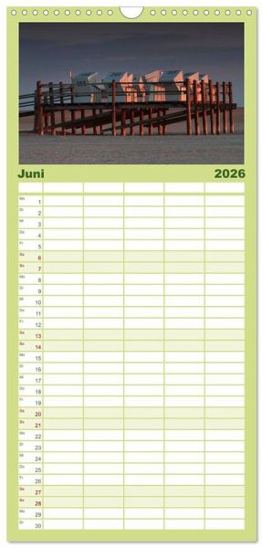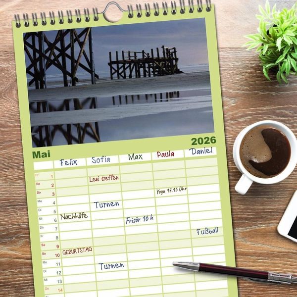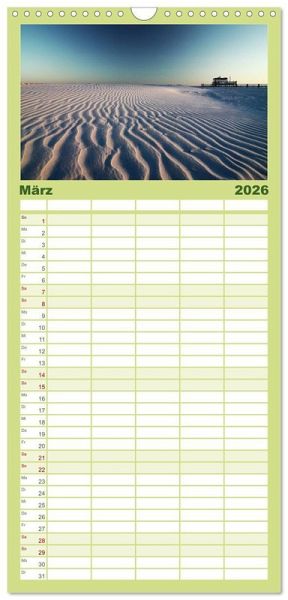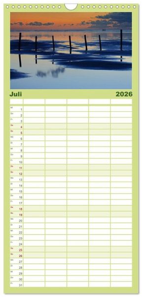 PRAKTISCH - übersichtlicher Familienkalender mit 5 Spalten für bis zu 5 Personen für mehr Struktur im Alltag - so bleiben alle Termine im Blick!ÜBERSICHTLICH - mit farblich getrennten Wochen- und Feiertagen. Die einzelnen Felder bieten genügend Platz für Eintragungen. So macht Organisieren Spaß!FANTASTISCHE BILDER - Dieser Planer ist nicht nur eine nützliche Hilfe im Alltag, sondern schmückt gleichzeitig Ihr Zuhause. Ideal auch als Geschenk.FÜR ALLE STIFTE GEEIGNET - ganz egal, ob Sie lieber mit Kugelschreiber oder Bleistift schreiben.NACHHALTIG - deutliche Abfallreduzierung durch bedarfsgerechte Einzelstückfertigung, umweltfreundliches FSC-zertifiziertes Papier, Produktion in Deutschland, klimabewusste Logistik.Impressionen vom Strand und aus dem Watt von Autor(in): Peter Schürholz
