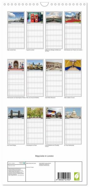 PRAKTISCH - übersichtlicher Familienkalender mit 5 Spalten für bis zu 5 Personen für mehr Struktur im Alltag - so bleiben alle Termine im Blick!ÜBERSICHTLICH - mit farblich getrennten Wochen- und Feiertagen. Die einzelnen Felder bieten genügend Platz für Eintragungen. So macht Organisieren Spaß!FANTASTISCHE BILDER - Dieser Planer ist nicht nur eine nützliche Hilfe im Alltag, sondern schmückt gleichzeitig Ihr Zuhause. Ideal auch als Geschenk.FÜR ALLE STIFTE GEEIGNET - ganz egal, ob Sie lieber mit Kugelschreiber oder Bleistift schreiben.NACHHALTIG - deutliche Abfallreduzierung durch bedarfsgerechte Einzelstückfertigung, umweltfreundliches FSC-zertifiziertes Papier, Produktion in Deutschland, klimabewusste Logistik.Stippvisite in London mit markanten Sehenswürdigkeiten von Autor(in): Rosemarie Prediger