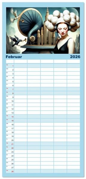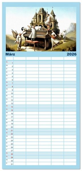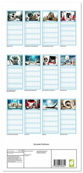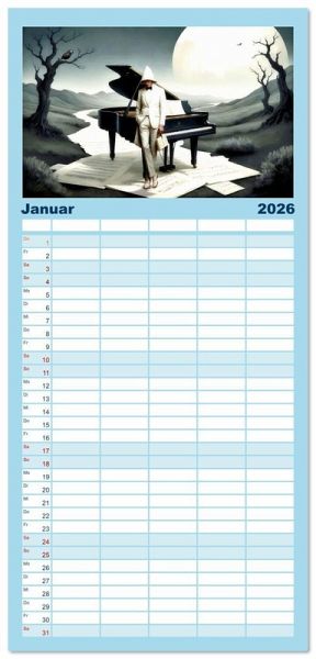 PRAKTISCH - übersichtlicher Familienkalender mit 5 Spalten für bis zu 5 Personen für mehr Struktur im Alltag - so bleiben alle Termine im Blick!ÜBERSICHTLICH - mit farblich getrennten Wochen- und Feiertagen. Die einzelnen Felder bieten genügend Platz für Eintragungen. So macht Organisieren Spaß!FANTASTISCHE BILDER - Dieser Planer ist nicht nur eine nützliche Hilfe im Alltag, sondern schmückt gleichzeitig Ihr Zuhause. Ideal auch als Geschenk.FÜR ALLE STIFTE GEEIGNET - ganz egal, ob Sie lieber mit Kugelschreiber oder Bleistift schreiben.NACHHALTIG - deutliche Abfallreduzierung durch bedarfsgerechte Einzelstückfertigung, umweltfreundliches FSC-zertifiziertes Papier, Produktion in Deutschland, klimabewusste Logistik.Fantastische Szenen aus Notenpapier von Autor(in): Garrulus glandarius