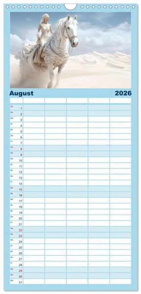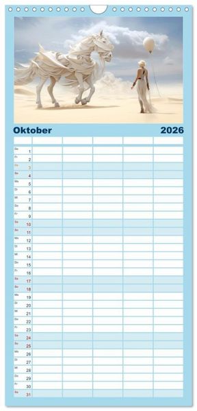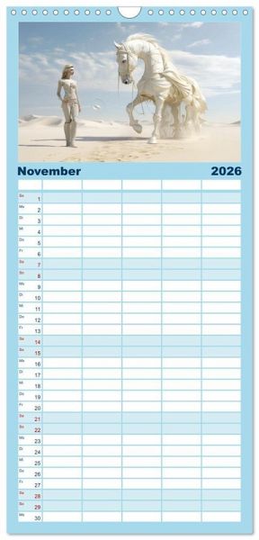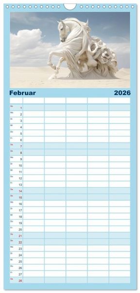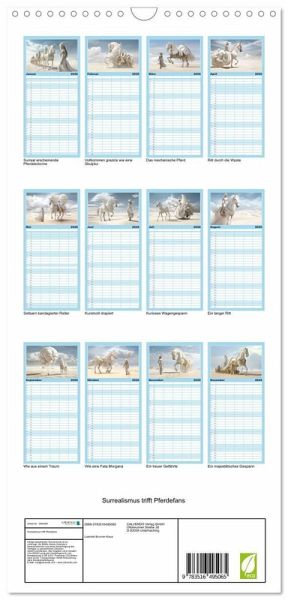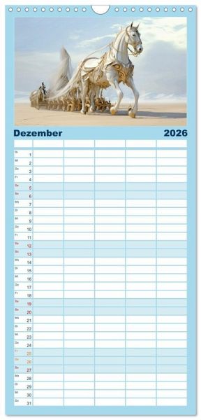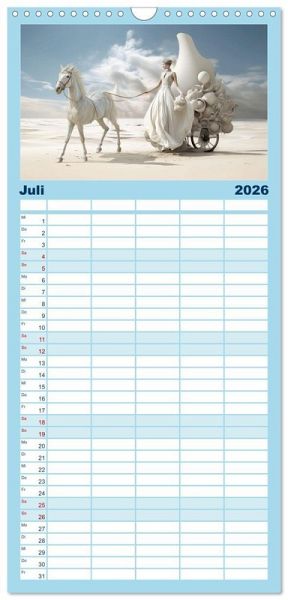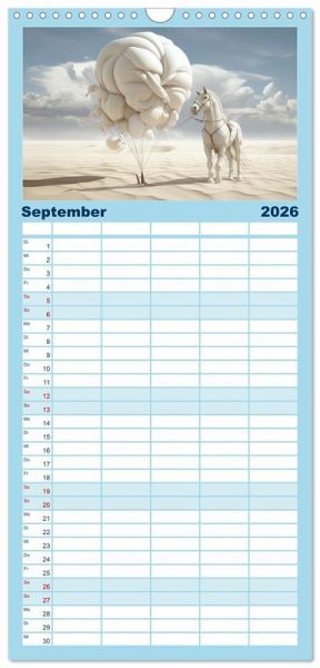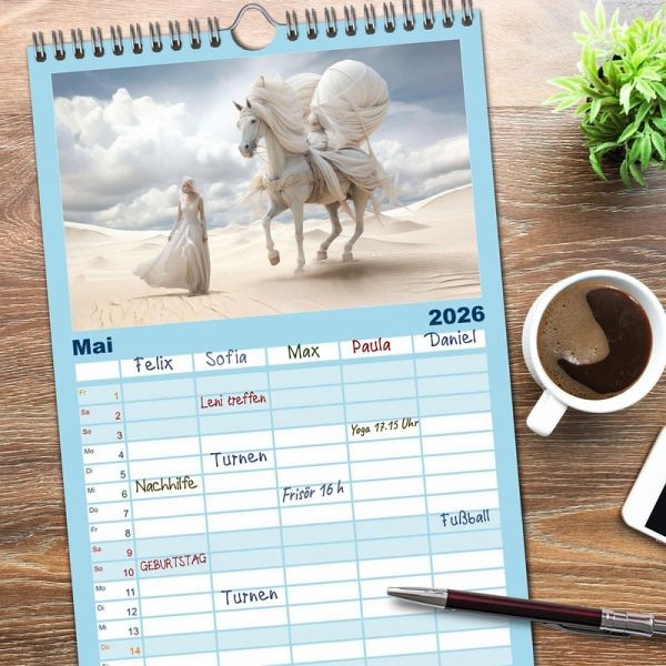 PRAKTISCH - übersichtlicher Familienkalender mit 5 Spalten für bis zu 5 Personen für mehr Struktur im Alltag - so bleiben alle Termine im Blick!ÜBERSICHTLICH - mit farblich getrennten Wochen- und Feiertagen. Die einzelnen Felder bieten genügend Platz für Eintragungen. So macht Organisieren Spaß!FANTASTISCHE BILDER - Dieser Planer ist nicht nur eine nützliche Hilfe im Alltag, sondern schmückt gleichzeitig Ihr Zuhause. Ideal auch als Geschenk.FÜR ALLE STIFTE GEEIGNET - ganz egal, ob Sie lieber mit Kugelschreiber oder Bleistift schreiben.NACHHALTIG - deutliche Abfallreduzierung durch bedarfsgerechte Einzelstückfertigung, umweltfreundliches FSC-zertifiziertes Papier, Produktion in Deutschland, klimabewusste Logistik.Surreale Pferde in der Wüstenlandschaft von Autor(in): Liselotte Brunner-Klaus